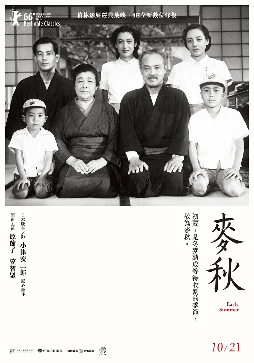 與《晚春》、《東京物語》並列為「紀子三部曲」的《麥秋》,為小津安二郎與原節子的二次合作。全片以原節子所飾演的女兒紀子之婚事為主軸,細膩描繪出家人之間,難以割捨的情感牽掛,並藉此醞釀出二戰之後,日本傳統家庭面對生死別離的人生況味。小津曾說:「我要拍的不是故事,而是輪迴、無常等深奧的主題。為了這個緣故,《麥秋》可算是我多年來最辛苦的作品。」麥秋意指初夏時節,正為秋日播種的冬麥,遲至來年成熟之際。累累麥浪隨風流淌,送走舊時代家庭的崩解,迎來生命衍續的嶄新篇章。