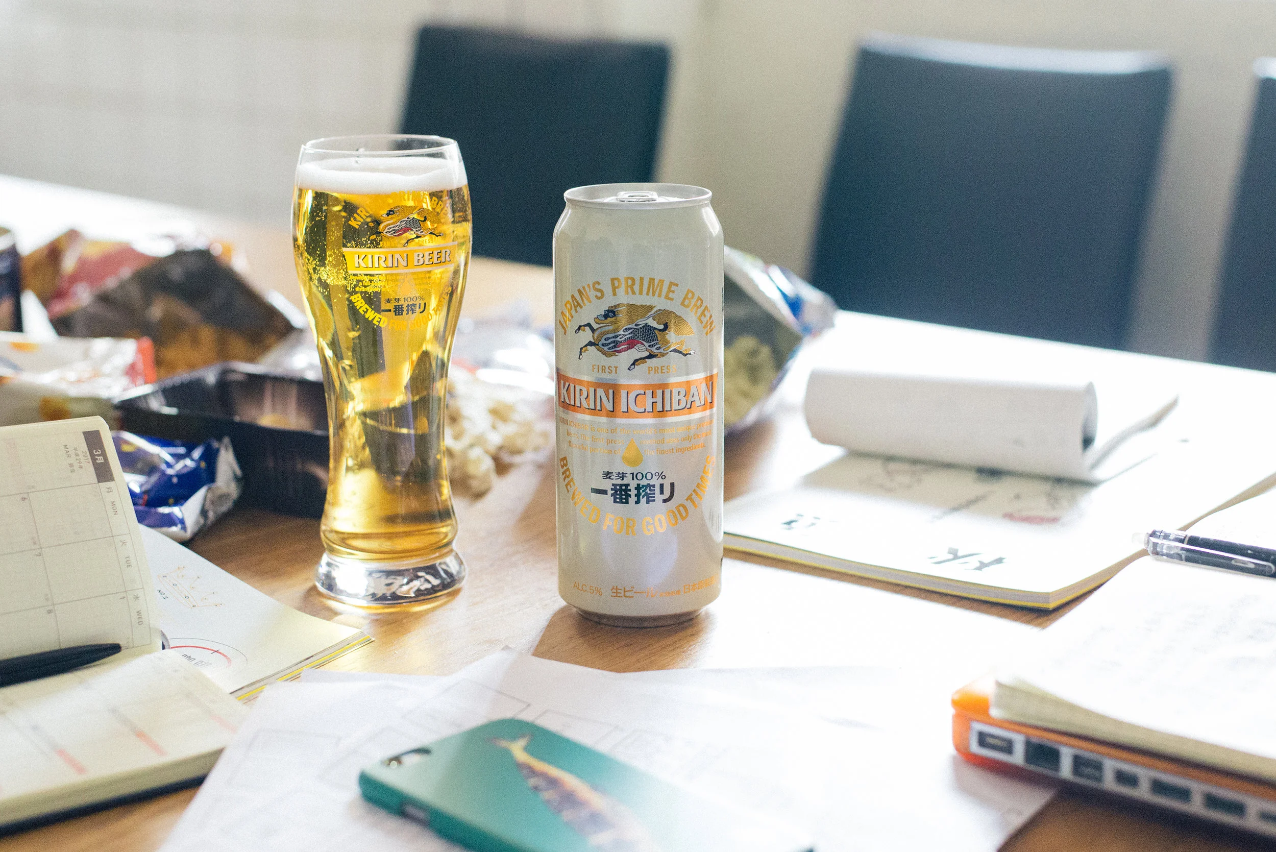 過年大魚大肉、耍廢追劇,還要抽空帶著《秋刀魚》第13期〈好想去便利商店!〉實地走訪日本超商,這個年假走的太快,還來不及收心,只好帶著貪吃的身心闖入《秋刀魚》編輯部開工會議,直擊編輯臺上的下酒零食。其中編輯部最喜愛以麥香四溢的KIRIN一番搾啤酒,配上ㄙㄨㄚˋ嘴的臺式餅乾,啤酒花的濃厚滋味與回甘的口感,堪稱大人零食的最佳夥伴。