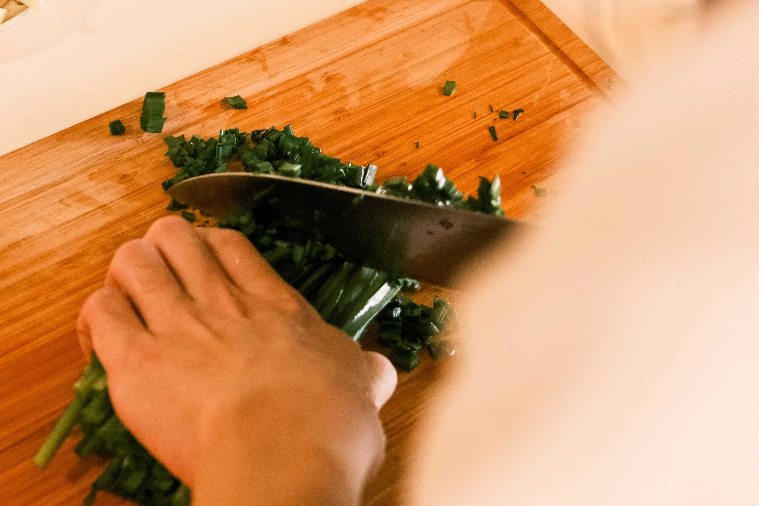 ① 備料:蒜頭切碎、韭菜切碎、蔥綠切蔥花、海苔切絲。