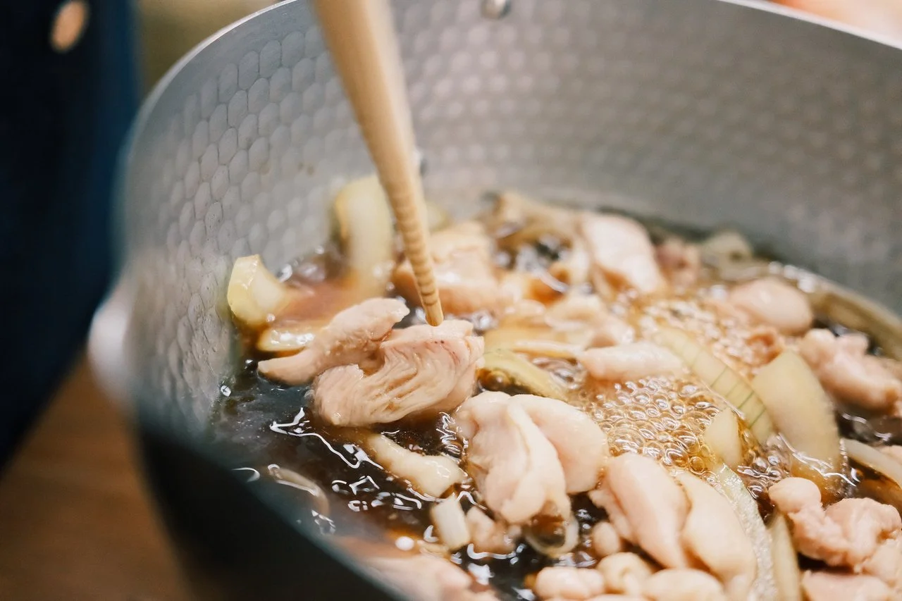 放入雞腿肉,不時翻動至雞肉煮熟(中火約3分鐘)