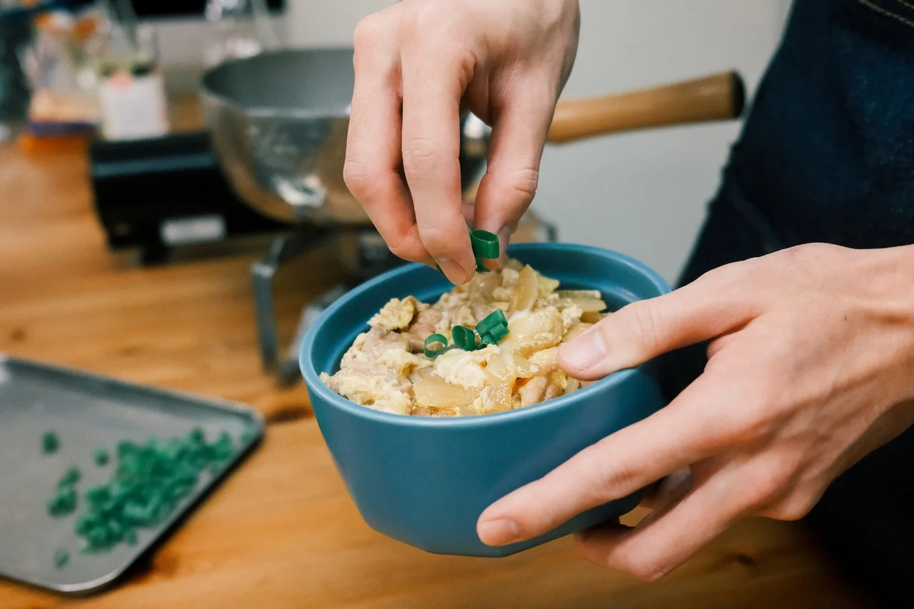 不可能在辦公室吃到親手現煮熱騰騰的便當吧!?親子丼是與咖哩飯、馬鈴薯燉肉並列的日本家庭主婦基本款菜單之一,成功關鍵在於下飯感十足的醬汁、軟嫩的雞肉與半熟蛋,沒想到能在艱困的工作場域裡,吃上一口完美的搭配,(看來可以繼續加班了)這會是多幸福的事啊。