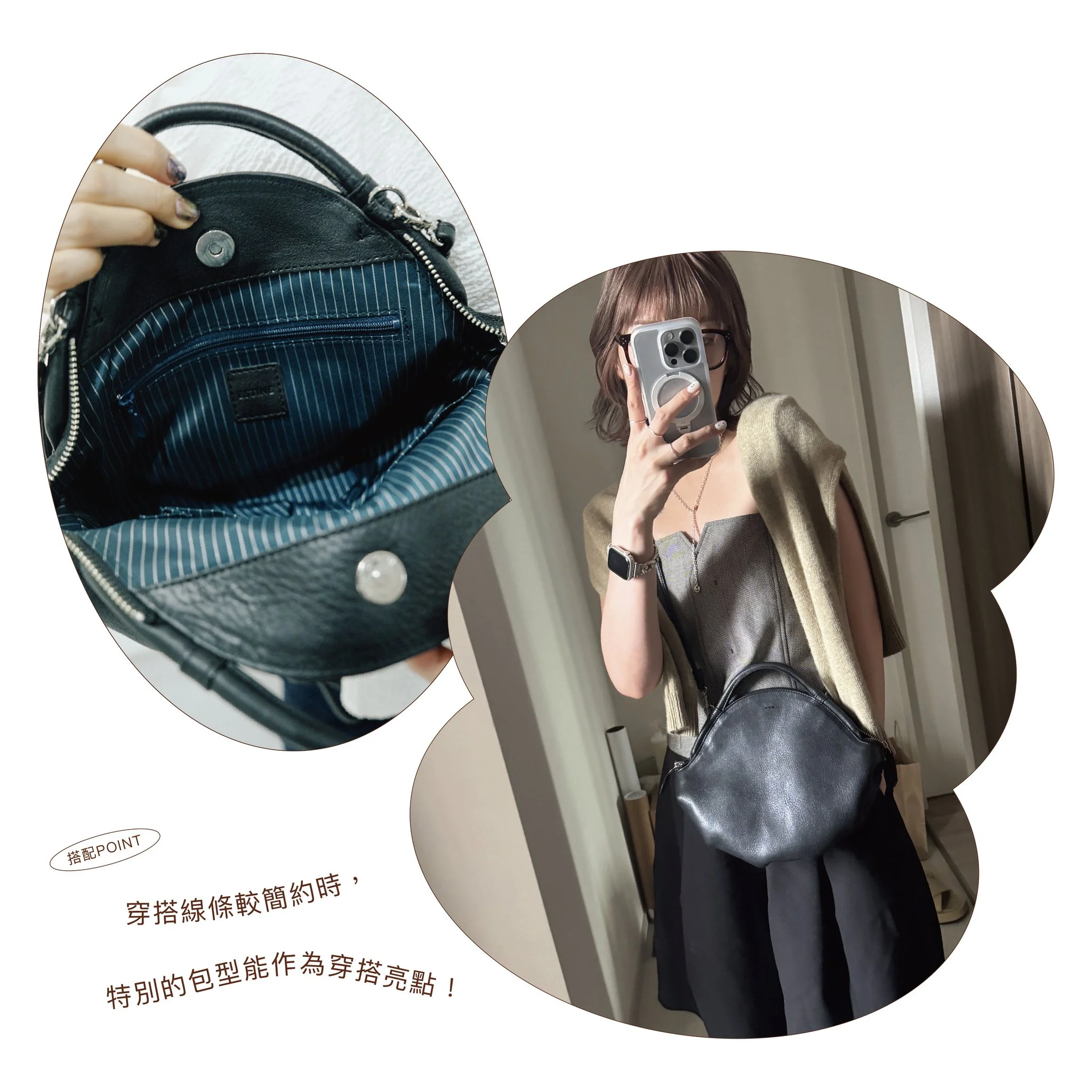 擁有餃子輪廓般的特殊牛皮兩用包,可肩背也可手提。大包口的設計可以大幅展開放便拿取物品,又兼備拉鍊與磁扣,保障安全性。且容量充足,連長夾大小的錢包都能輕鬆放入。包內也貼心提供收納空間,維持包內秩序,兩處開放式口袋,可收納名片夾、手機等物品,拉鍊口袋則收放貴重物品。材質選用優質日本國產牛皮,柔軟的質感,讓人忍不住想觸摸,是一款兼具時髦搭配與實用性的多用途包。
