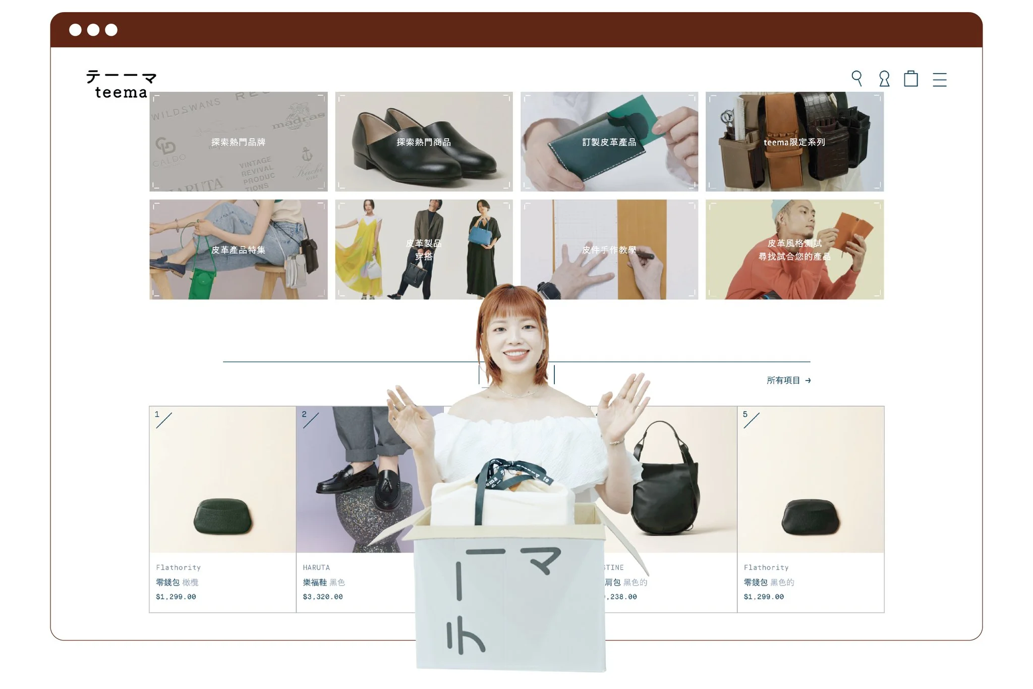 出國前,總是會先在網路上查找目的地較鮮為人知或質感小店,無論是食物或購物,希望能為旅程創造一些意想不到的驚喜與收穫。去日本時,我們很推薦到日本皮革生活風格網站「JAPAN LEATHER JOURNAL」逛逛,上面整合介紹了日本各個地區的質感皮革小店與品牌,如你也喜歡皮件,不妨可以參考。而若暫時沒有去日本旅遊的計畫,在網購如此便利的時代,只需動動手指,就能無分國界、輕鬆入手喜愛的商品。而日本的線上購物平台也不斷整合出新的平台形式,例如這回要介紹的專售日本皮革商品的網站-「テーーマ・teema」。在teema上,你可以一次瀏覽來自日本各地的職人與設計品牌的皮革商品,除了常見的皮包、皮夾、皮鞋,還有飾品及DIY材料包,讓你輕鬆比較選購。另外, teema 讓人愛不釋手的原因還有-搜尋類別依使用情境細分,例如包包的分類:「適合休閒日的時尚迷你包」、「一泊二日旅行的必備包款」、「不受天氣影響的機能性包」等,依需求快速找到最適合自己的那一款。選品時髦且豐富的teema,所有商品都可以直送臺灣!瀏覽時,可要注意荷包了!