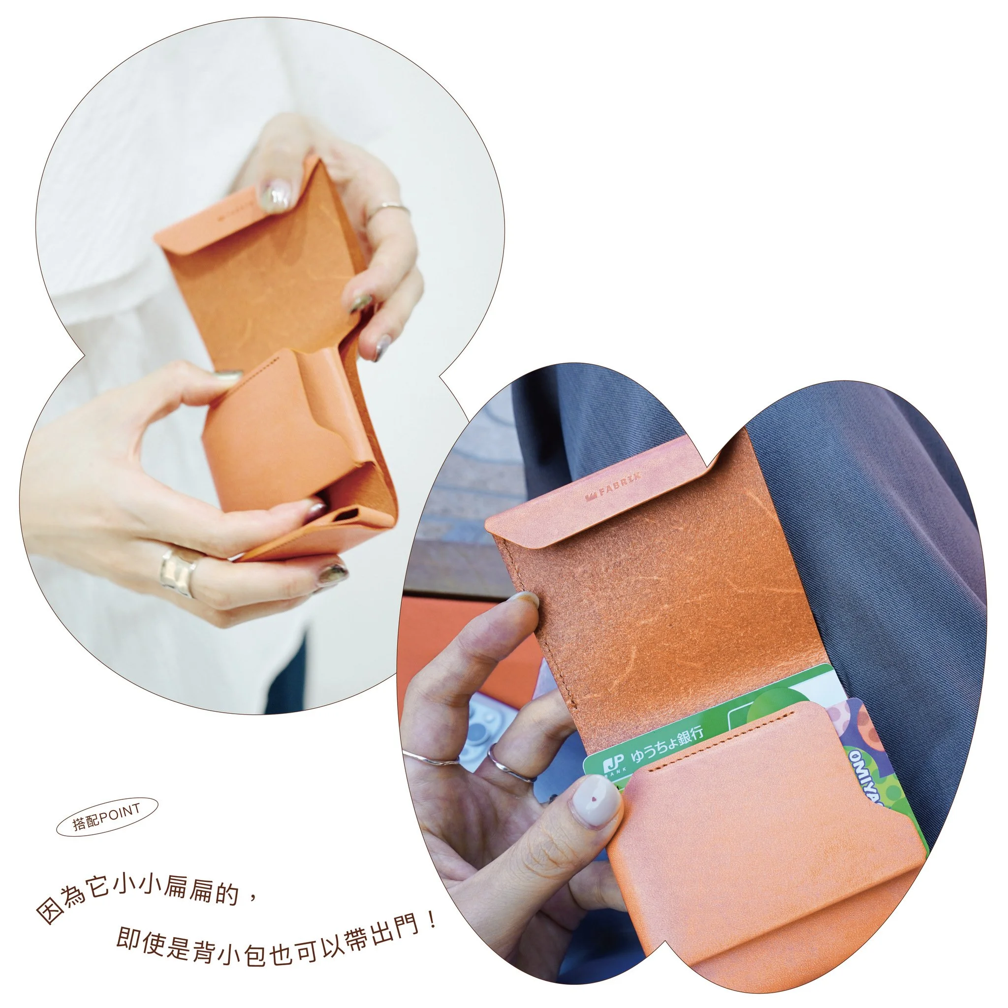 以特殊的技巧縫製皮革,FABRIK的特色在於使用最少縫線,將皮革如同摺紙般巧妙摺疊,摺出有閉口的包型,並提供多達九種鮮亮顏色供選擇。由於不使用金屬配件,外型更加洗鍊,能將厚度控制在一定的高度,完全不佔包包空間。挑選錢包時,最讓人在意的莫過於是否方便拿取內容物,這款錢包的雙開口設計,拿取鈔票或零錢不會手忙腳亂。喜歡皮革的人,也能在折疊、展開之間,感受到皮革的趣味性。