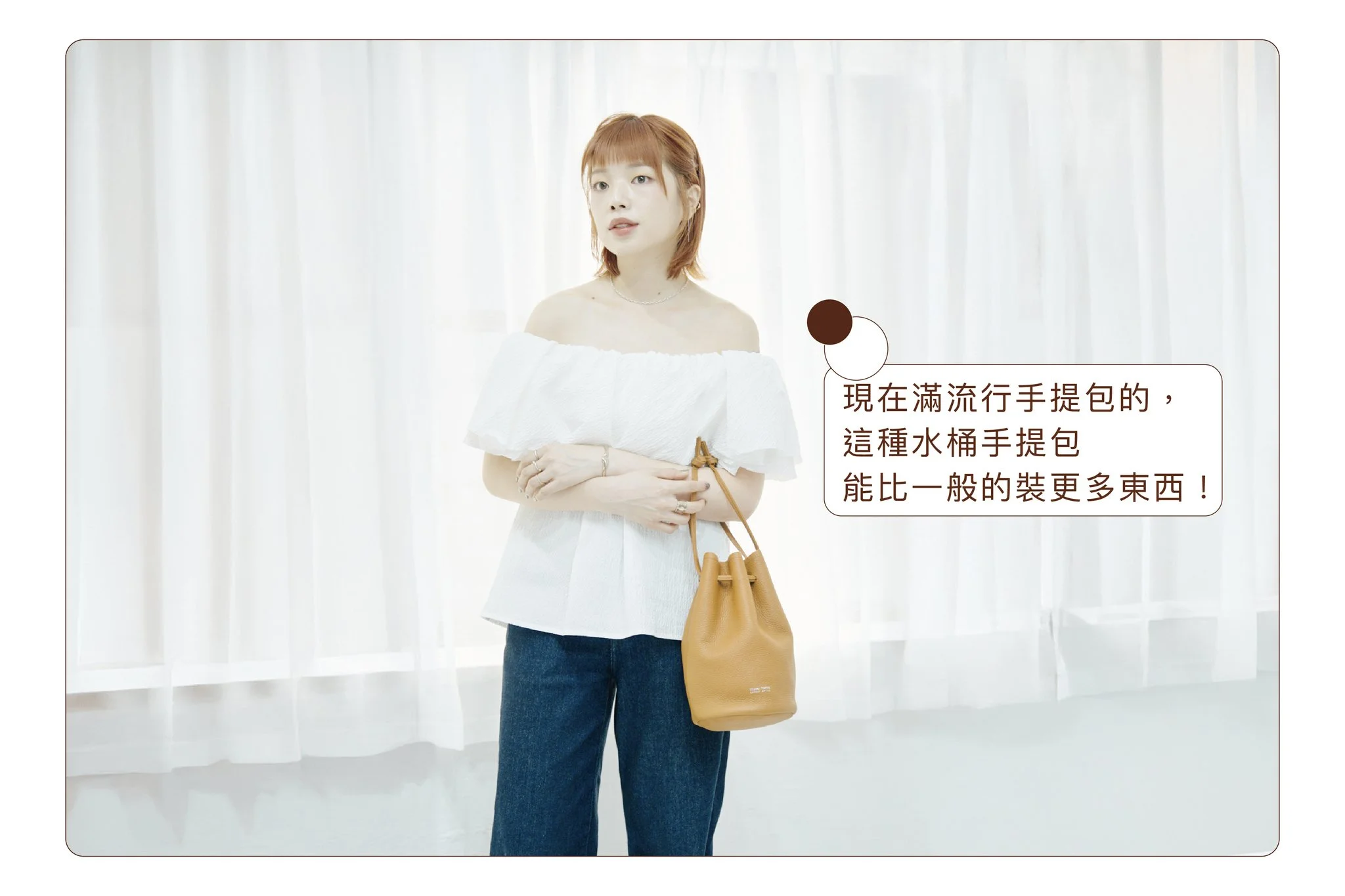 搭配POINT:穿搭線條較簡約時,特別的包型能作為穿搭亮點!