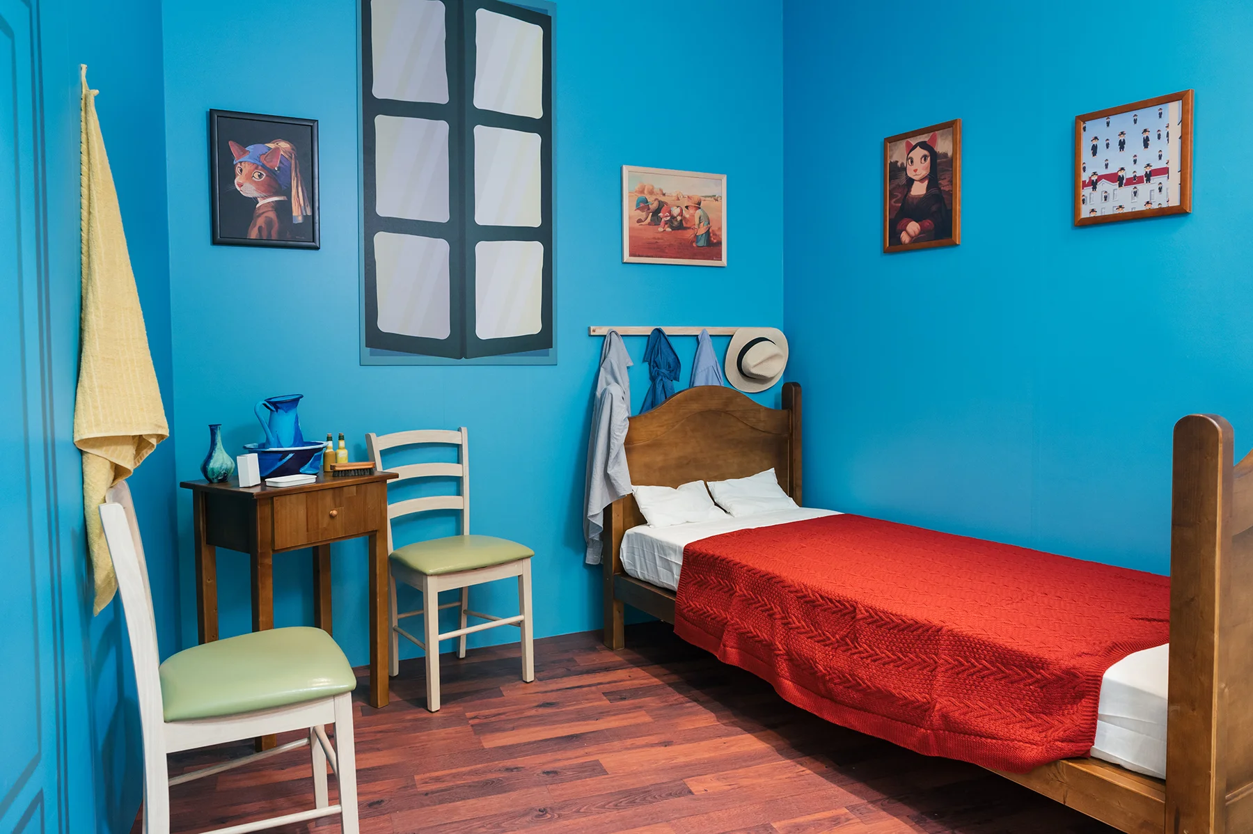 展場除了展出60幅原畫,同時也將畫作變成實體裝置,走進「梵谷貓的房間」,跟著喵谷展出最藝術的POSE!