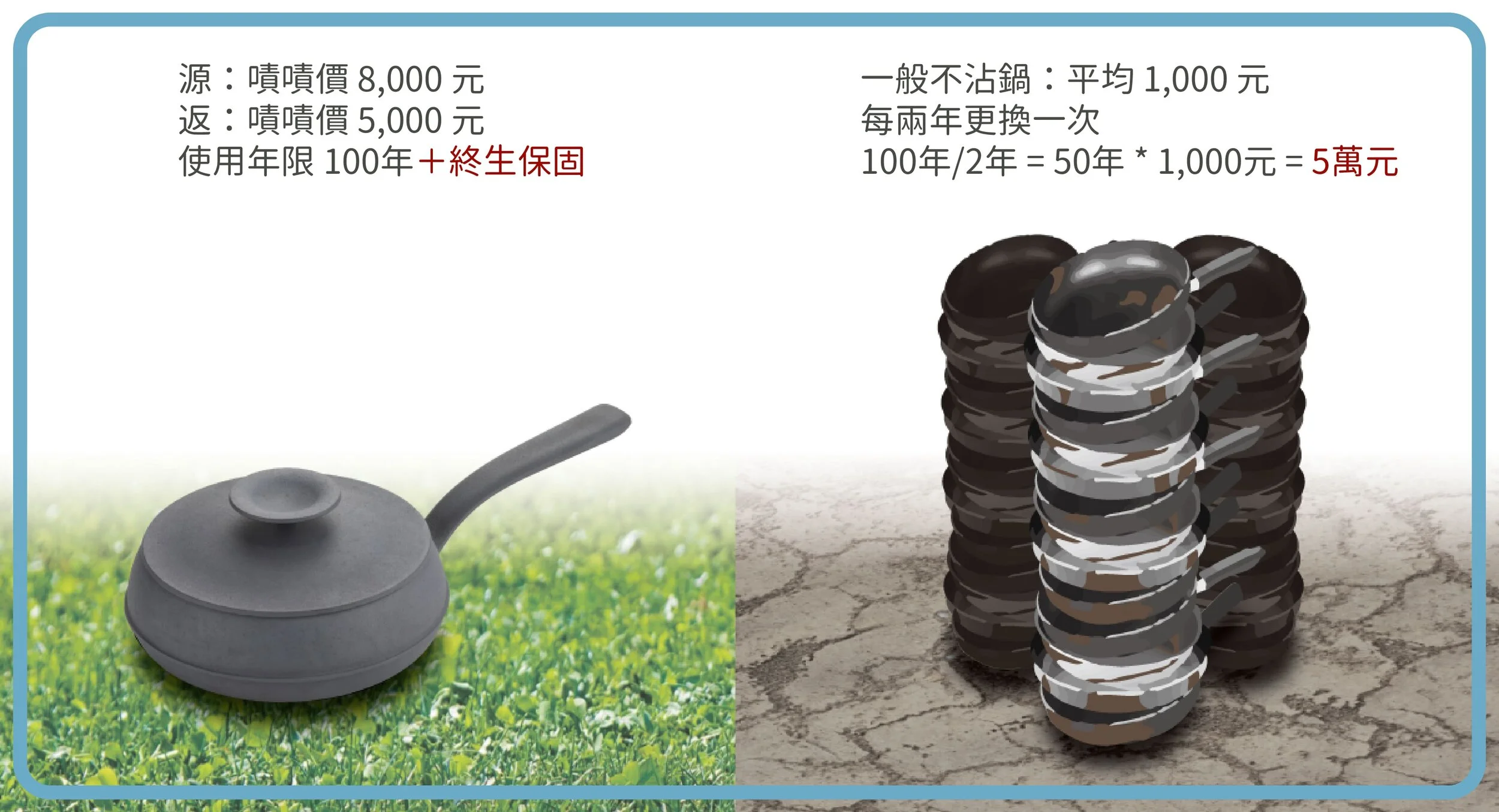 不粘塗層的化學塗層通常應用於鍋具上。這類的不沾鍋不僅需要頻繁更換,更是無法否認對健康和環境的負面影響。 然而,由100%鑄鐵製成的源與返不僅無化學塗層且非常耐用,裸製技法更是大大提高了鑄鐵鍋的高烹飪性能,進而改變家庭烹飪的概念和口味。