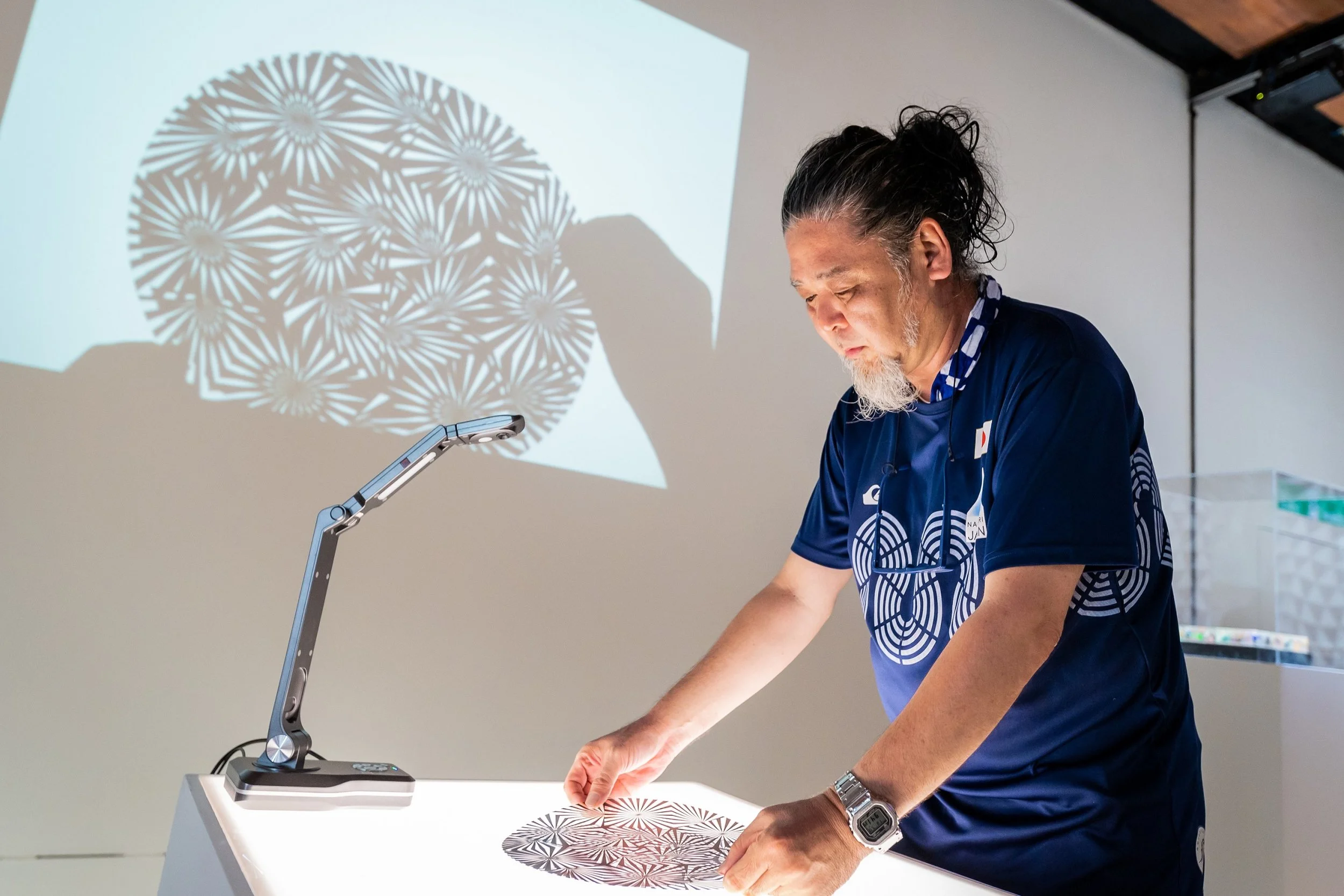 展覽現場除了多件設計新作首次發表,還有野老朝雄眾多代表作品特別空運來台展出,像是體現美學黃金比例的「碰碰熊(KumaponG)」圖紋、與建築師鶴岡信太郎(亦是本次展場設計者)及小平裕子共同創作,以311大地震時全球贈予日本宮城縣的紙鶴所打造的「2020東松島紙鶴千中選一」,皆能領略藝術家兼具創意與人文關懷的設計思維。此外,展場也匯集近300幅經典紋樣,以4米高巨幅投影展現幾何藝術帶來的視覺震撼。此次藝術大展精彩內容將由Taiwan Pitch「國際紀錄片人才培育暨拍攝邀請計畫」以紀實影像完整記錄,未來將透過國際影音串流平台TaiwanPlus與全球觀眾分享。