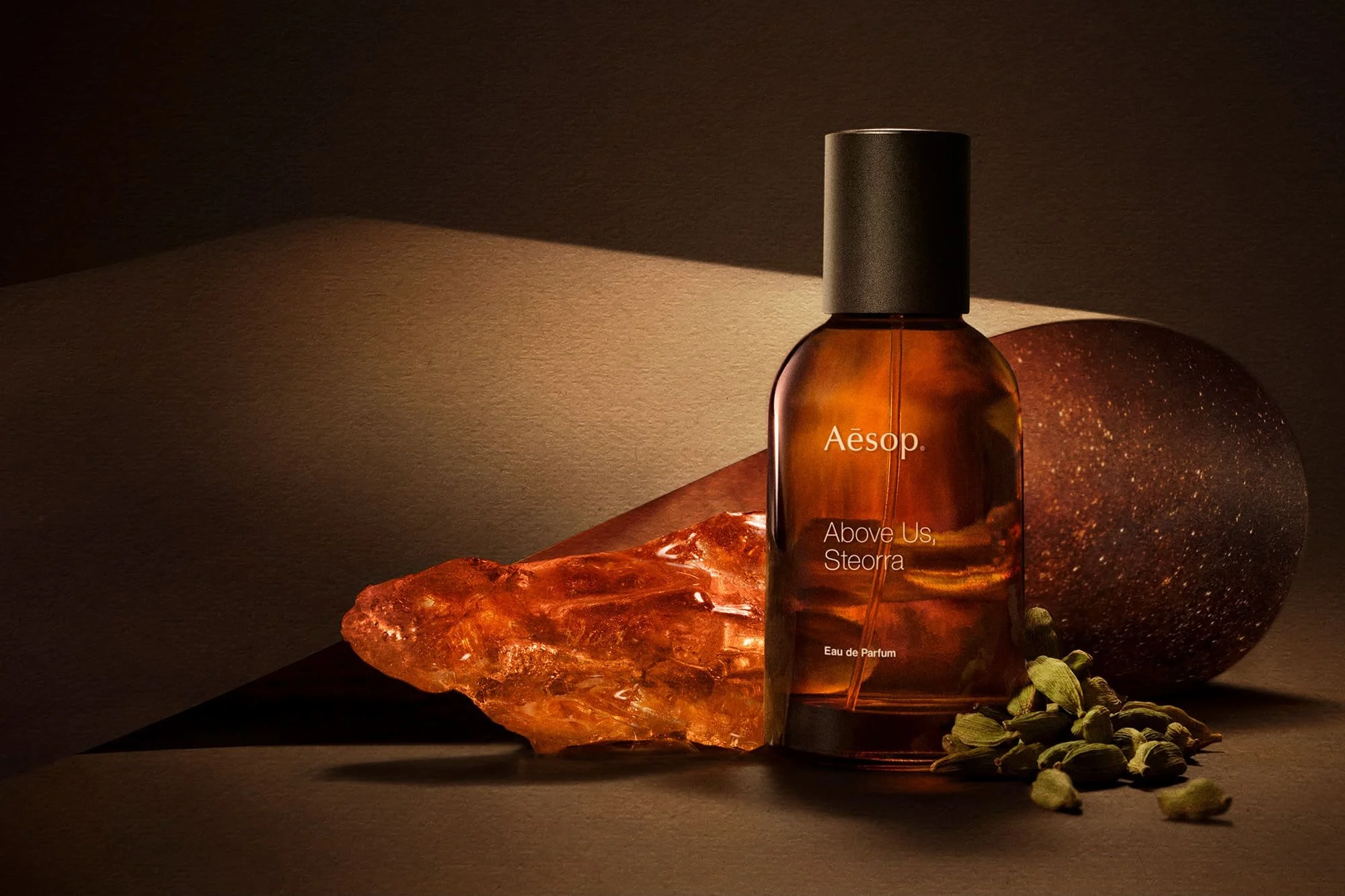 這款香水的誕生,源自 Aesop 與長期合作的調香師賽琳.巴雷爾(Céline Barel)從三組意象中汲取的靈感:日本俳句詩人黛 Madoka 的〈流星〉詩句、一幀深邃夜空的攝影相片,以及琥珀在光影下千變萬化的色澤。以此為起點,雙方展開對話,探究當仰望夜穹時,內心所自然湧現的敬畏感——那一瞬的凝望,引領思緒奔向無限可能。城市燈火漸隱,喧囂歸於寂靜,心底便悄然浮現一個疑問-我們,願否信任未知?