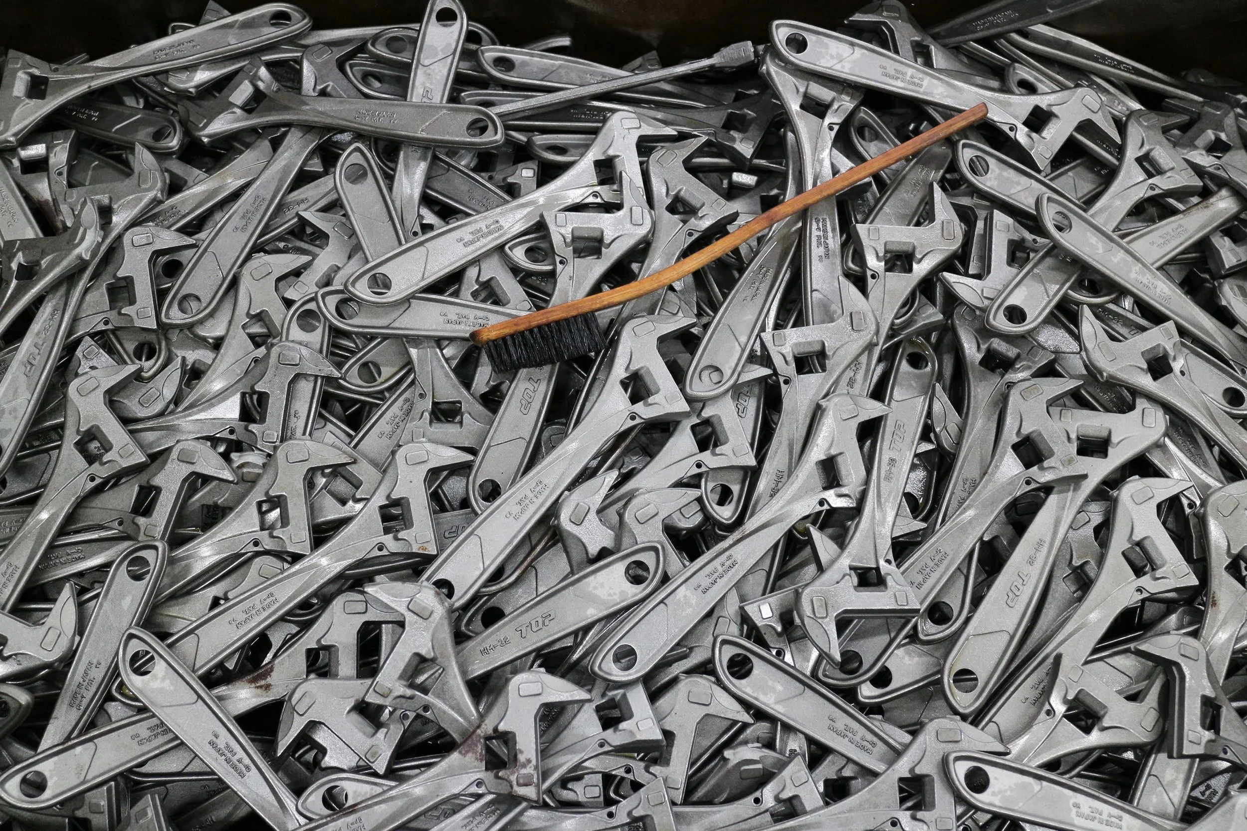 鉗子與剪刀類似,是一種結合左右兩部分的多功能工具,但其製造過程完全不同。鉗子在中途的磨光和機械加工過程中,分別製造左右兩側,經過鍍鉻和其他防銹處理後,在最終組裝階段才合併為一體。即使將一年前製造的右側與今天製造的左側在表面處理後對齊,它們仍將完美地合為一體而毫不偏差——此即IPS Pliers引以為傲的生產系統。