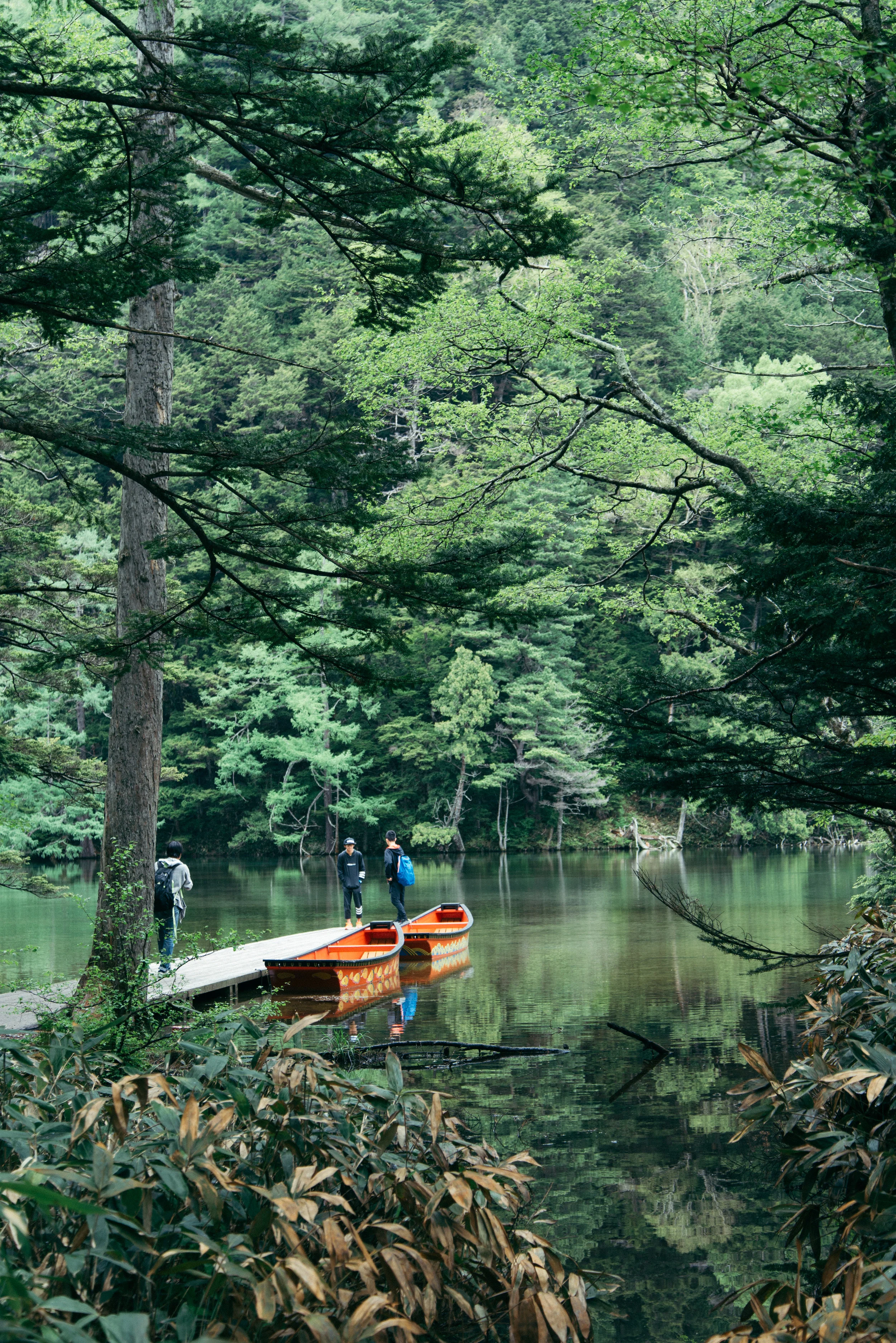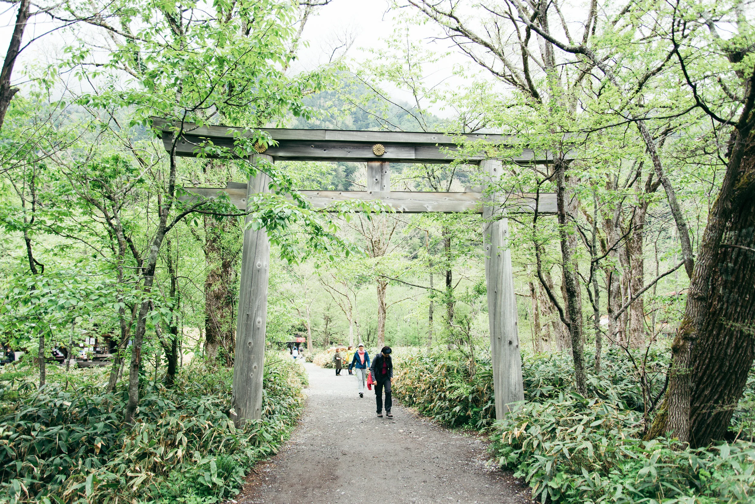 一腳踏入穗高神社奧宮的木製鳥居,空氣中頓時瀰漫肅穆的氣味。自古以來穗高神社奧宮便鎮守著日本阿爾卑斯山群峰的安定,庇護每位滿懷恭敬之心的「自然訪客」。往裡頭走,即是神社內的靈域所在地-明神池。有如葫蘆形狀的明神池,眼到之處都被綠意盎然的針葉樹林包圍,嬌嫩的翠綠與沈穩的深綠相爭錯列著,映得池水也生機四溢。池中佇立的山石,充斥著日式庭園般的靜寂之美,明神池恍然是神明怡然自得的作品,卻有著令人屏息的絕美景致。