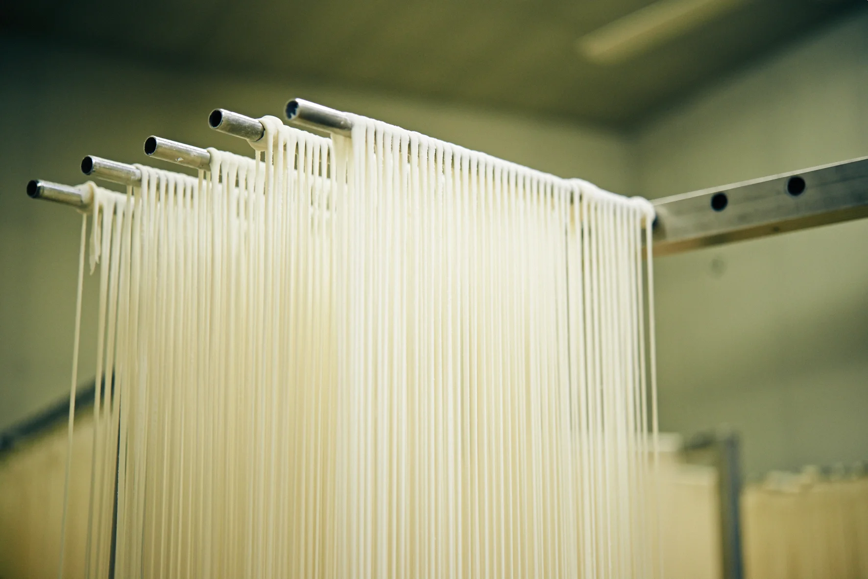 不同於渾圓飽滿的粗條烏龍麵,稻庭烏龍麵又被稱為「稻庭饂飩」,是日文中的「Udon」,不是「餛飩」(Whan-Tan),也就是烏龍麵的意思。稻庭饂飩是以手工拉成細條,再經過陰乾的麵條,細、扁卻更有嚼勁,剔透的光澤與入口後Q彈口感相當誘人,這「細扁」的外觀,來自東北大雪的氣候影響,老祖宗們將小麥做成麵團,透過纏繞及拉製,形成細長的烏龍麵,增加口感也加速乾燥,讓在地人們冬天也能品嚐麵食,於是,從1665年確立製法後,湯澤市的稻庭烏龍麵成了地方產業。烏龍麵的製作過程從發酵、熟成、纏繞、延展到乾燥需要花上4天的時間,不僅仰賴技術,更靠著職人們對氣候的敏銳度,「第一天揉麵團時,就要想到第三天的天氣,是否出太陽或陰天?這都影響著麵條最後成形的樣貌。」佐藤正明形容,「烏龍麵是有生命的。」稻庭烏龍麵的滋味,彷彿會呼吸的麵條,麵芯留下機械製作絕不可能出現的氣泡孔洞,吸收著秋田大地的氣息。