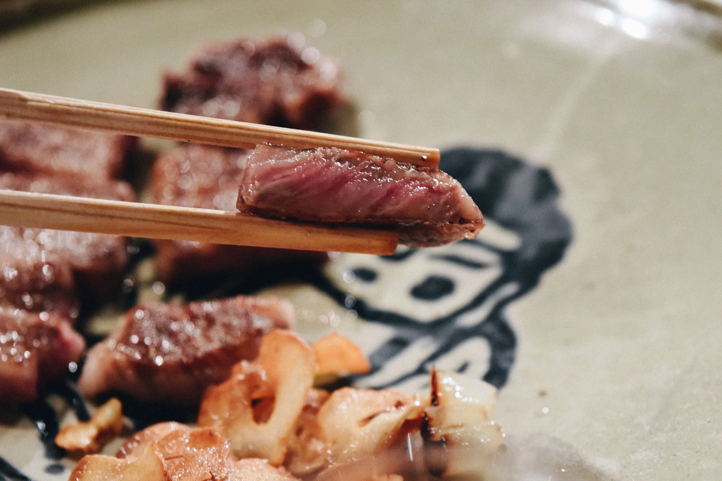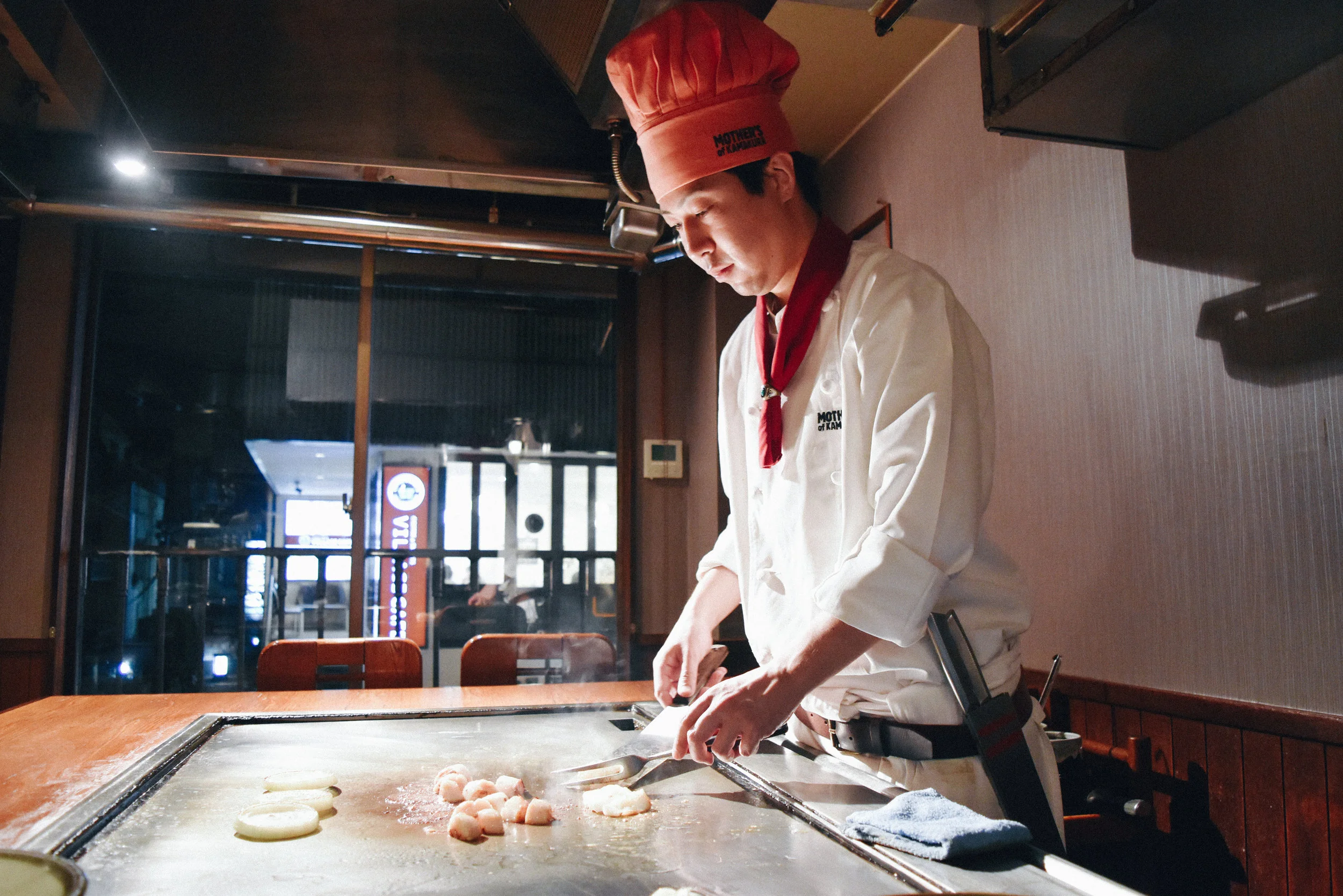 標榜使用一年只販售200頭三浦葉山牛的高品質牛肉,「葉山牛ステーキMOTHER'S OF KAMAKURA」使用香煎的方式保留了肉質漂亮的油花及溫柔的口感。除了肉本身的優良品質外,店內另一項吸引人之處莫過於「表演」精湛的主廚們,簡單的一兩各步驟就快速的去掉蝦子的沙腸、華麗的切開葉山牛的表面,讓五分熟紅通通的葉山牛,一片片落在盤上,優雅的撒下海鹽點綴,似乎同時上演著一場味覺和視覺的饗宴。