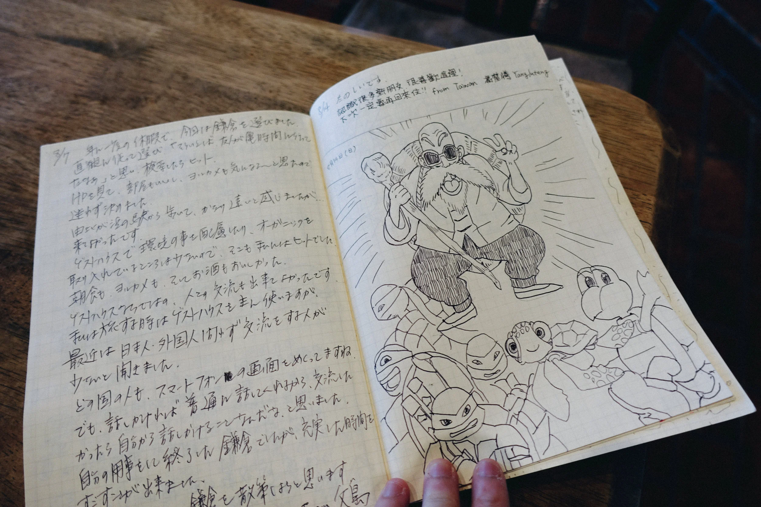 「龜時間」的靈魂人物非店主櫻井先生莫屬,人稱「MASA桑」的他,從言語中可以聽出奔放的海派性格,以及充滿故事的傳奇人生。「哩後!」聽見來自臺灣的客人,MASA桑趕緊用看youtube所學的中文打招呼,甚至簡單以中文介紹屋內設施,「因為我喜歡臺灣。」曾經來訪2次的他,熱愛旅行的血液是從年輕時就養成的性格,因為不想成為苦悶的上班族,MASA桑大學畢業後就獨自前往尼泊爾教英文、數學,而後短暫回日在唱片公司上班後,還是懷念自由的生活,從此開起環遊世界的飛行計畫,一路從大阪搭船到上海、走遍印度、巴基斯坦、伊朗等中東地區,最後落腳非洲,結識了一群朋友,共同經營咖啡廳、學Mbira(拇指琴),短短3年時間繞地球一圈,也找到自己的人生價值,決定將旅途中看見人與人的交流帶回故鄉。