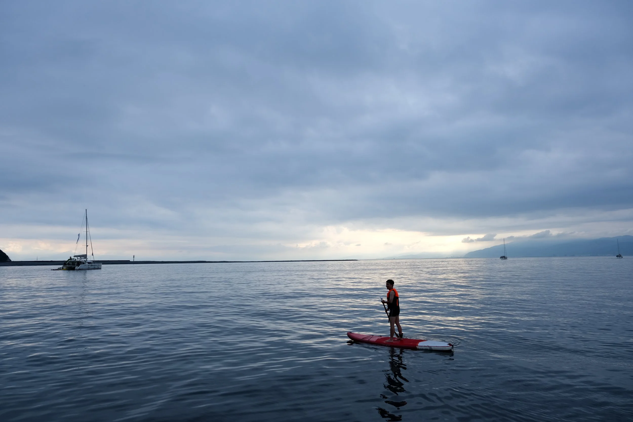 若自烏石港啟航,乘著海風、搭著遊艇或帆船來到龜山島附近的海域,不只可欣賞夢幻的牛奶海,也可以來到安全的水域活動。近年來盛行於海內外的水上活動「SUP立槳體驗」,在龜山島周邊海域可以充分體驗,這裡的浪高、風力皆相對穩定,同時能將夢幻的牛奶海牛奶海盡收眼底。「SUP立槳體驗」結合衝浪與帆船滑行原理的板類運動,是水上運動入門的推薦首選。透過專業教練指導,新手很快就能運用槳在平靜的海面上移動,或坐或站,甚至還能做瑜珈,在海面上感受更親近龜山島水面、探尋周邊海域的奧祕。