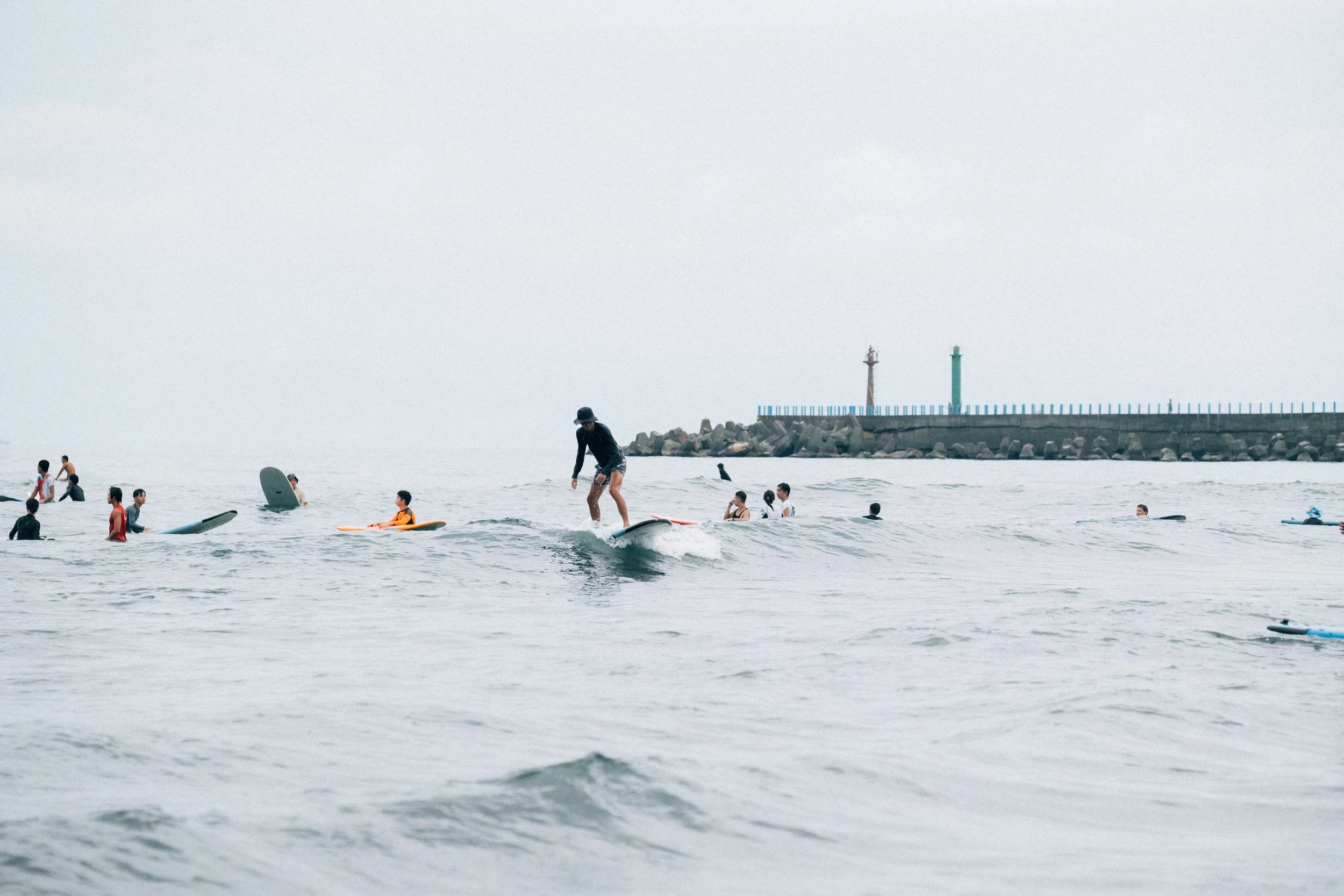 若提到外澳最迷人的親海活動,衝浪運動穩坐冠軍。這裡地形平緩,海浪力道足夠、浪點又穩定,非常適合初學者到此感受衝浪的成就感。除了地形友善、季節也友善,尤其東北季風來臨時,浪況更是比夏天過癮,不斷吸引高手們輪番挑戰,讓烏石港北堤逐漸成為衝浪者勝地!只要浪況好的白天,大清早就能看見衝浪客出現在海面上,看著他們為了衝浪再早起床也甘願,想必只要能成功站上浪尖,再多煩惱都可拋!