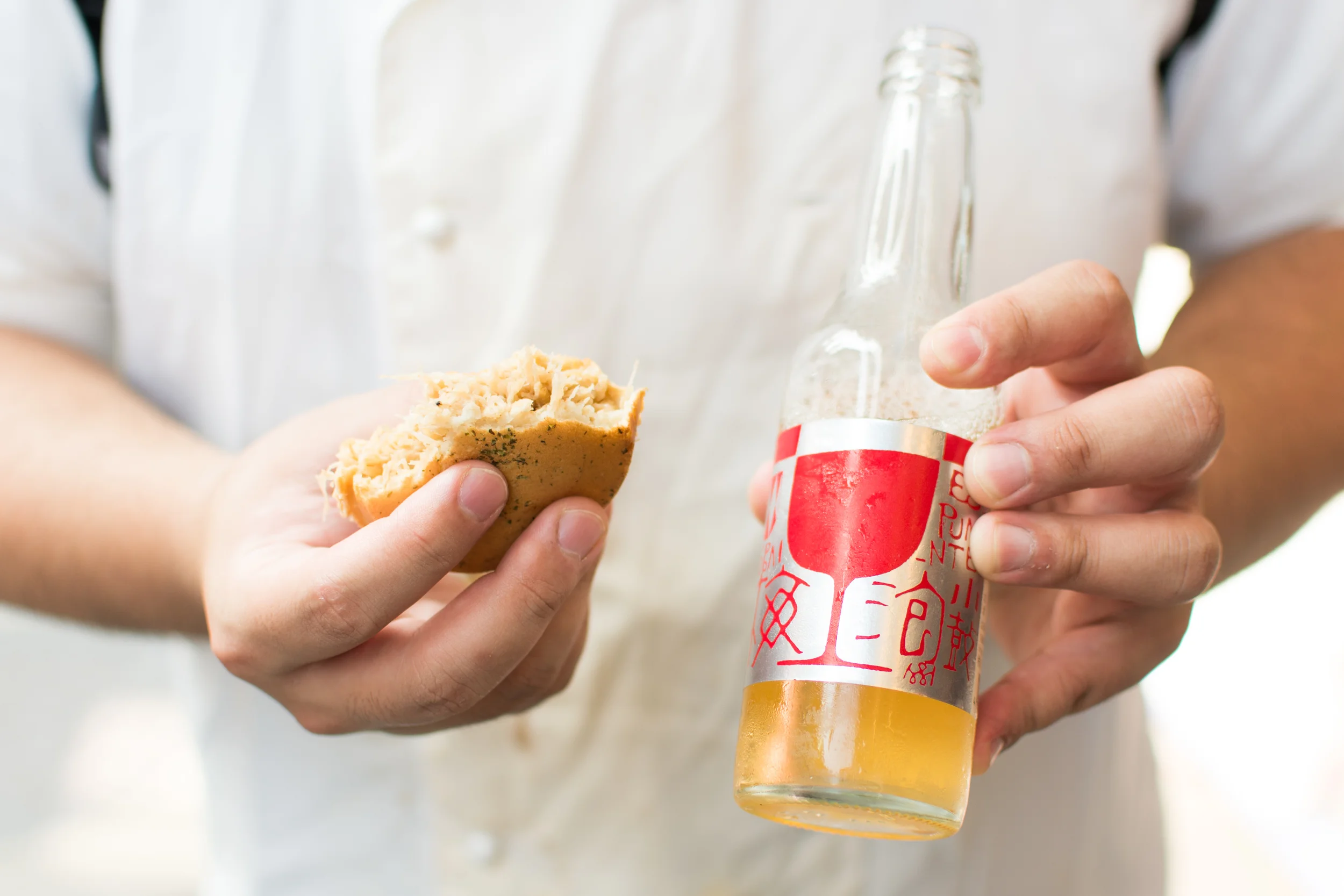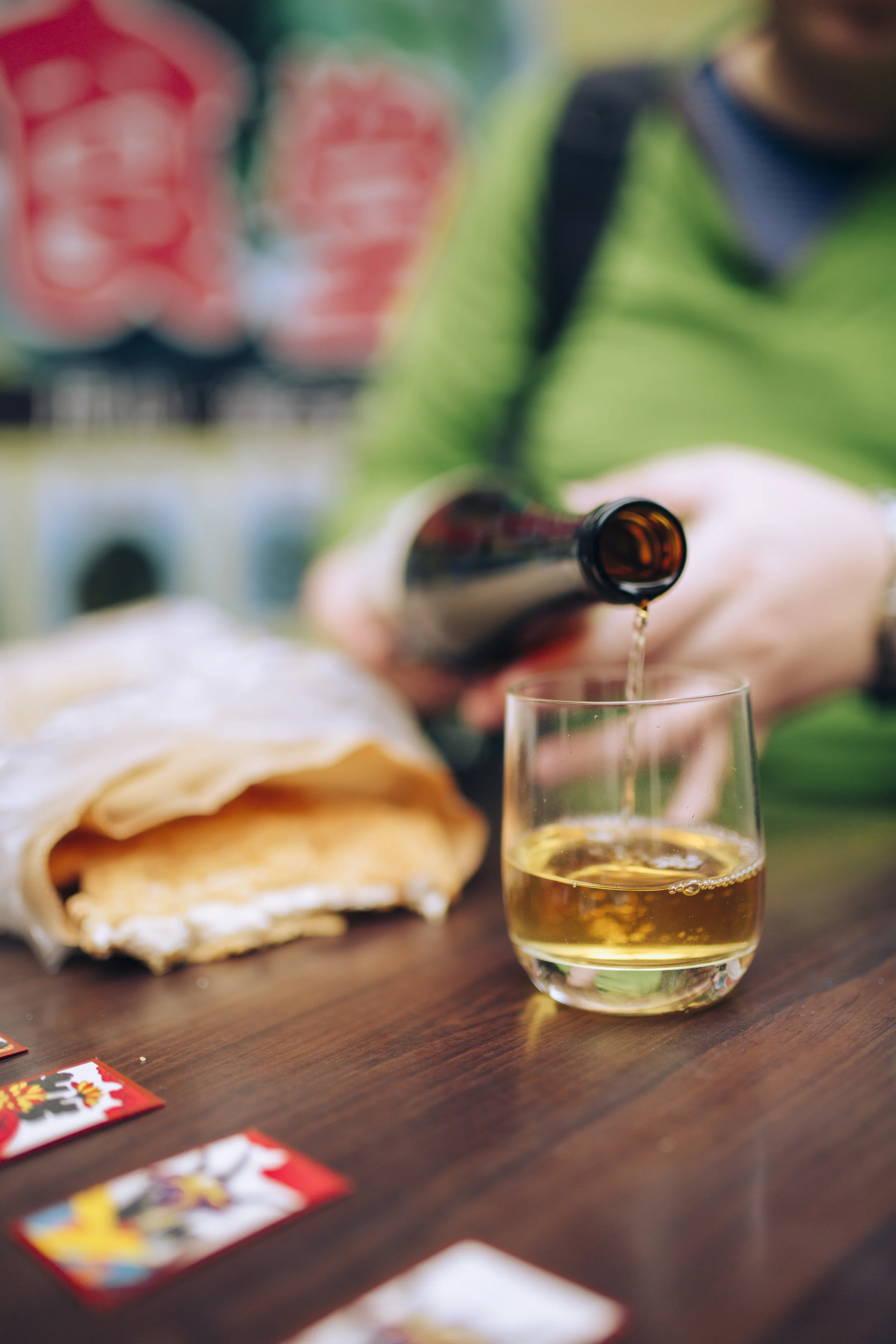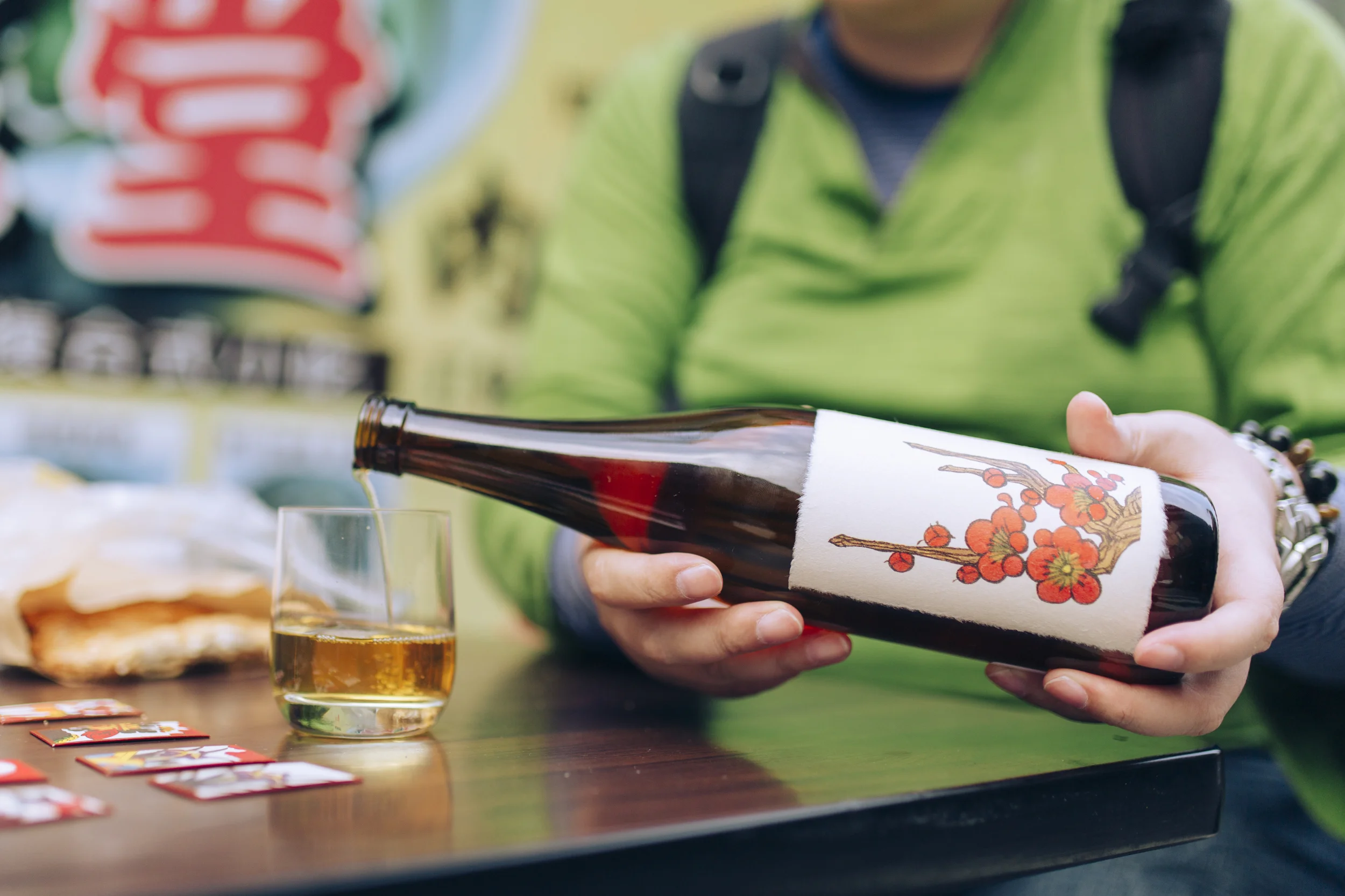 こだわりの梅を小鼓の美味しいお酒で漬け、コクと旨みと香りをたくさん引き出す。そして低アルコールで、度数が5パーセントなのにシュワシュワと爽やかな、シャンパンのような美味しい梅酒は酸味を持つので、台湾のB級グルメ車輪餅に合う。特に「菜圃」と「蘿蔔絲」という鹹味の車輪餅との相性が良い!