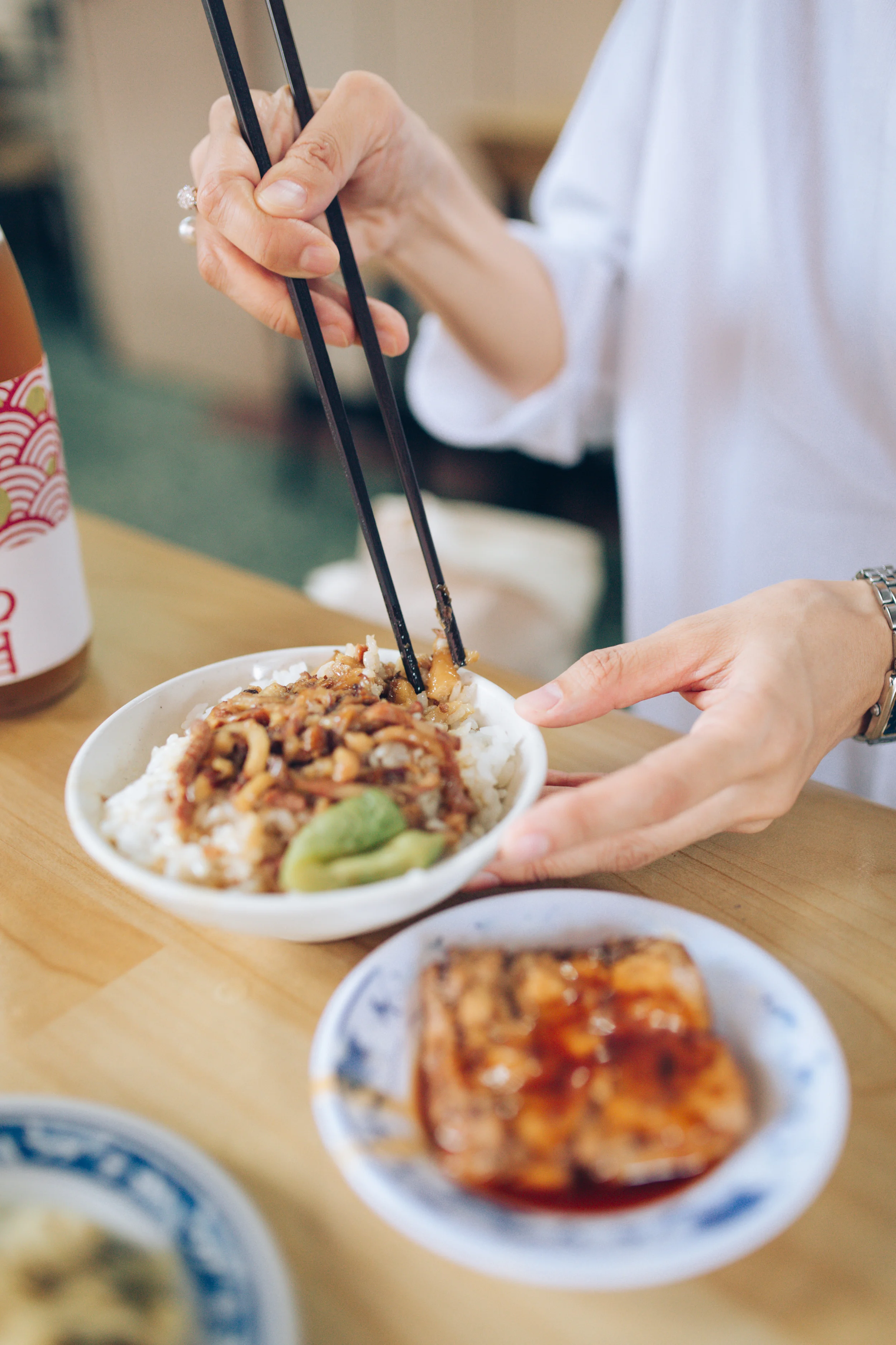 風味豊かな梅酒と豊富なミネラスを含む塩を引き立たせ、究極のバランスを探し求めている。思わず口がすぼむ刺激的な酸味と舌先に残る微かな塩味は、魯肉飯によく合う漬物、梅干し、紫蘇干しを思い出させる。魯肉飯の「魯肉」と日本の「肉じゃが」の肉はほぼ同じだと思われ、香ばしく大人な風味を持つ塩うめは肉の脂の感じも消せ、魯肉飯の味もアップできる。