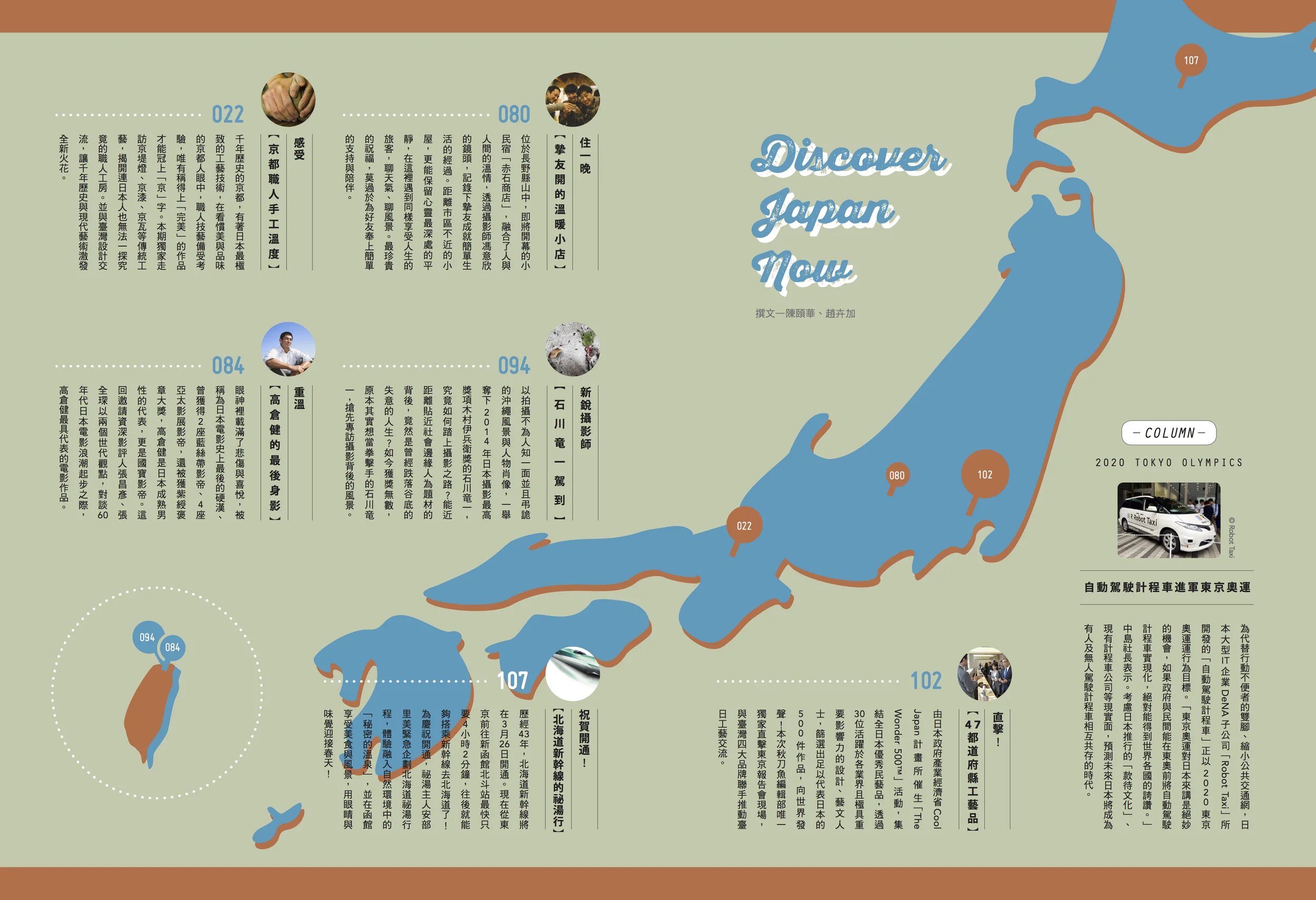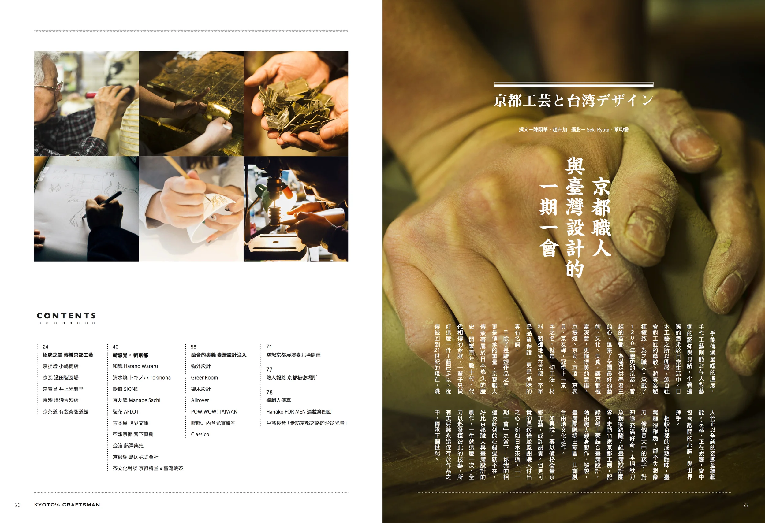 相較京都的成熟韻味,臺灣顯得稚嫩,卻不失想像力,像個長大中的孩子,對知識充滿好奇。本期秋刀魚獨家跟隨7組臺灣設計團隊,走訪11家京都工房,記錄京都工藝結合臺灣設計,藉由職人親身製作、解說,臺灣團隊提出藍圖,共創融合兩地文化之作。