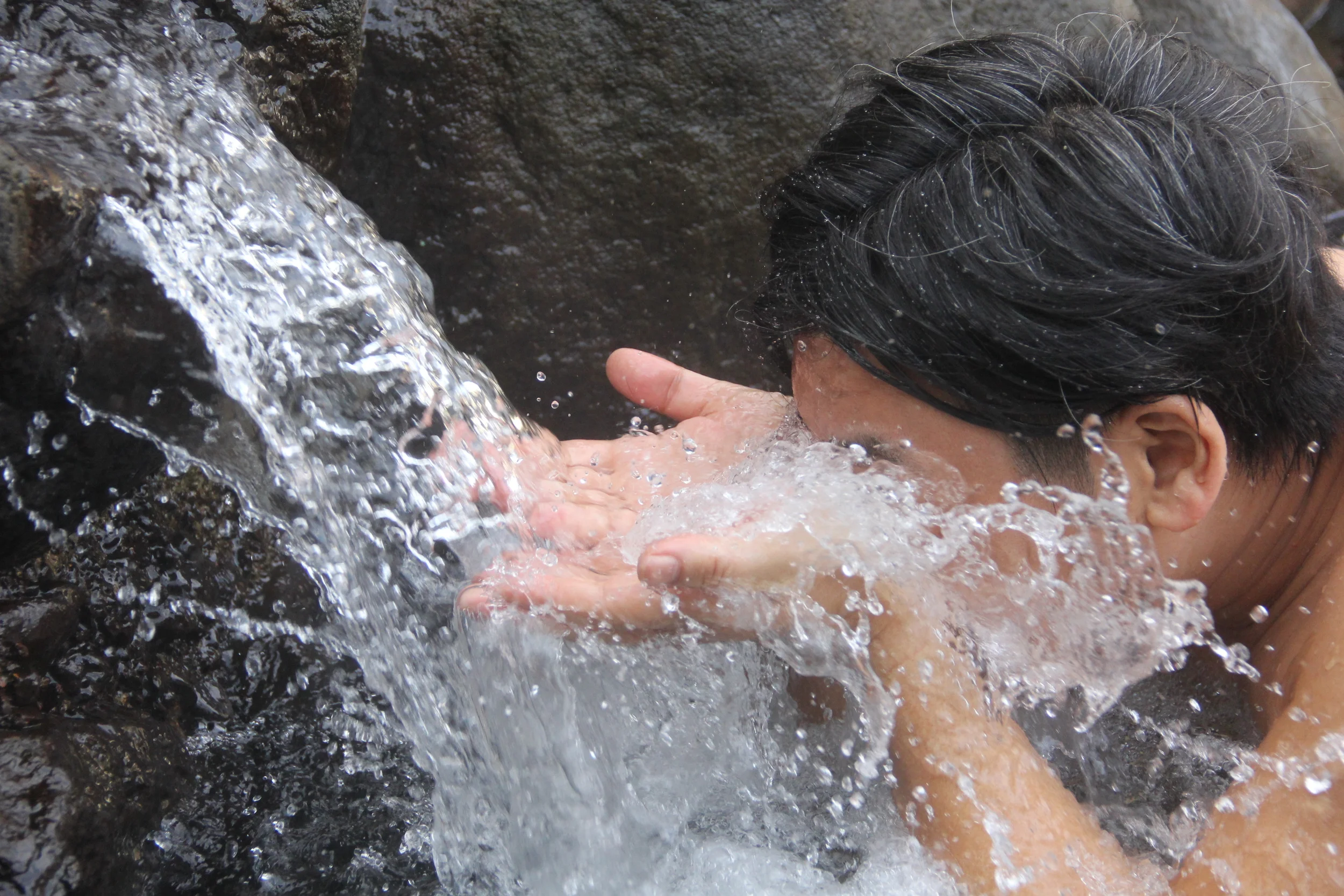 貝掛温泉的泉水具有保護眼睛的療效,浸泡方法首先用手捧取露天溫泉流水口的熱水,張大眼睛,將眼睛浸泡於熱水中,再重複張眼、閉眼,持續1~2分鐘,即可達到功效。