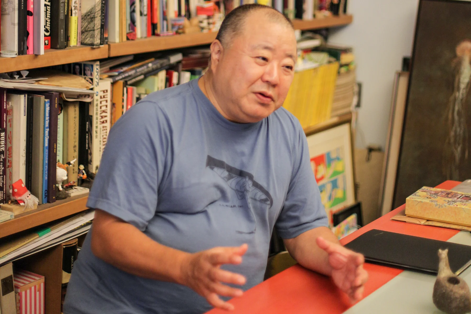 在「大人的學校」裡,都築響一絕對有資格作為這所「真實被假象所隱藏」的社會學校裡,最敢講真話的老師。位於東京的工作室,只見滿牆面的書與隨地擺放卻亂中有序的藝術畫作,印證他曾說「自己不適合住在雜誌理會介紹的華麗居家裝潢住宅」。而比起文字中辛辣與毫不保留揭露真相的筆吻,本人的聲音輕柔,彷彿是會出現在深夜居酒屋,拿著生啤跟晚輩閒聊親切大叔。「是這樣呢!雜誌跟公司都像是『活著』的生物,有年輕也會變老,需要新血循環,也有可能會消失,跟著時代起伏、興衰,是理所當然的事情。」什麼問題都還沒開始,就先自己做了一個開場,倒也像是替這個時代做個結論。