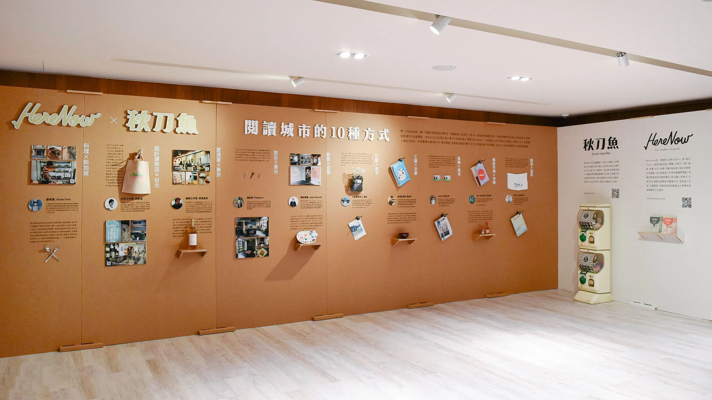 欣賞完展覽的朋友別忘了旁邊的扭蛋機和摺頁,展場獨家提供《秋刀魚》限量商品,還有日本線上城市導覽「HereNow」限量東京、臺北城市地圖,收集當地創意工作者嚴選私房清單。在APP商店搜尋「HereNow」可以發掘更多亞洲精彩城市角落。