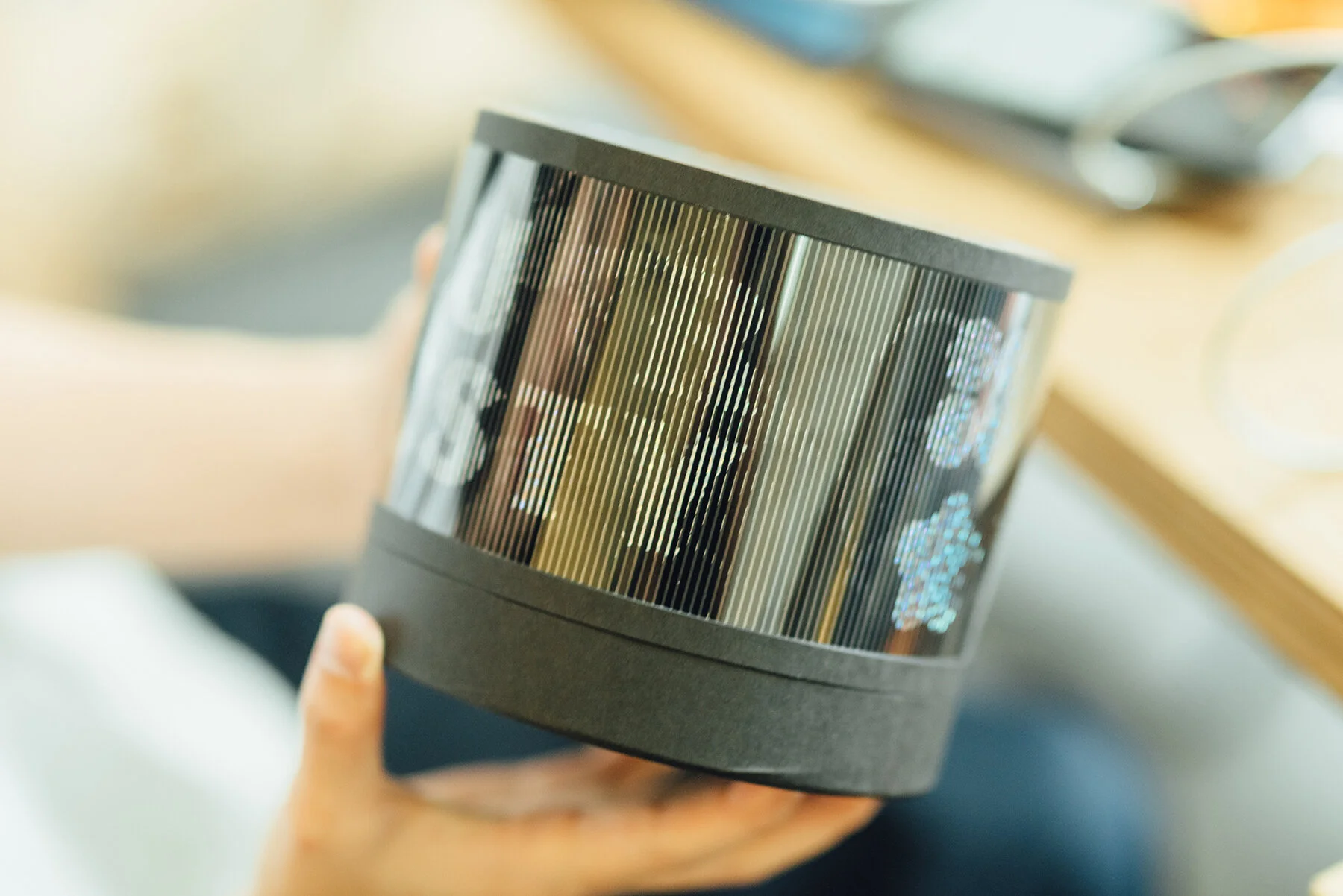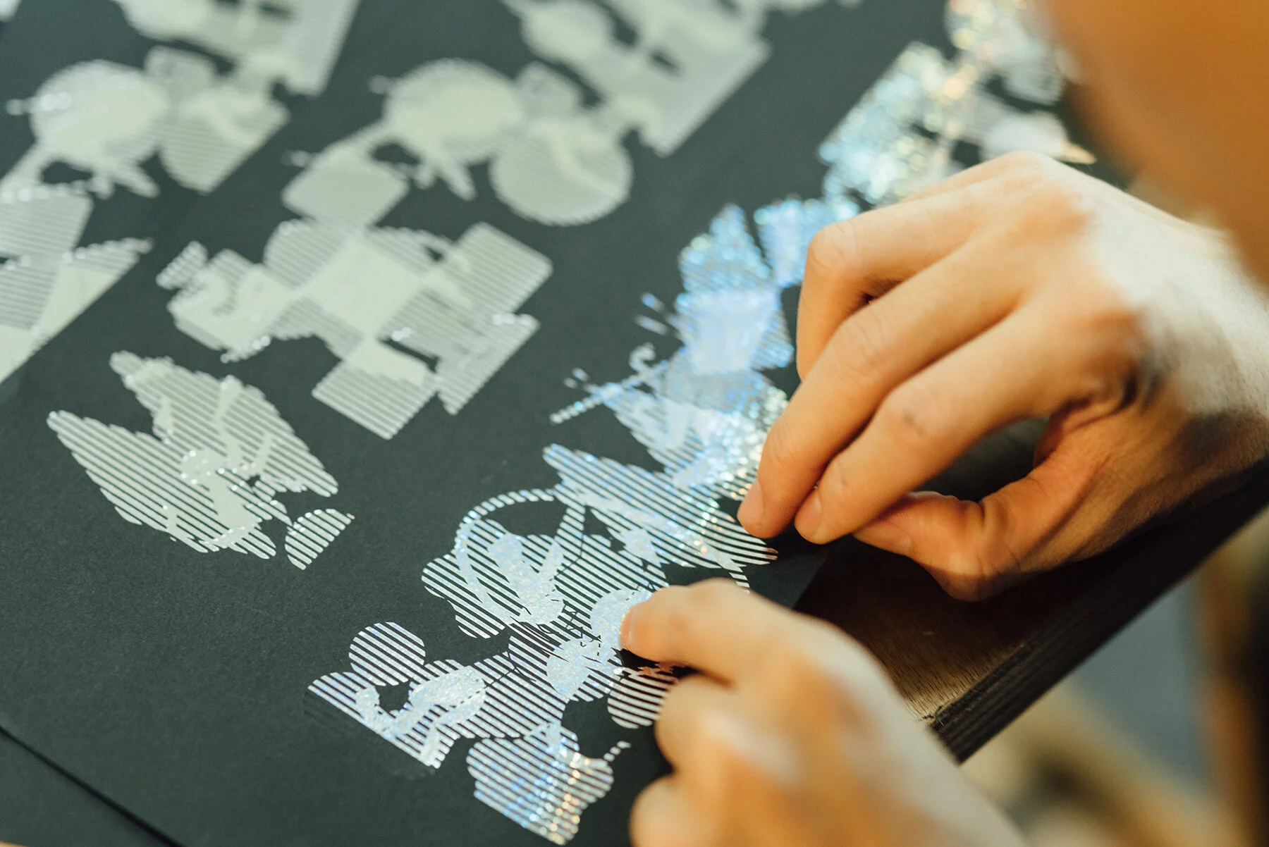 使用特殊加工印刷對黃顯勛來說也像在破解任務,「有時候了解技術不是為了馬上應用,而是知道的越多,能讓自己面對不同題目時,可以拿出好的牌去應對。」去年底為設計生活雜誌《Shopping Design》設計的獎座,則是從立體的角度去挑戰紙的可能性,他將機器印好的紙對裱在厚卡紙上,軋型增加結構與支撐性,再用線條做出流動感,搭配若隱若現的透明與金屬色,低調卻能表現出「新浪潮」的主題感的單片雲母金箔,光測試就用了5種紙材,特殊印刷像是畫龍點睛般的存在,讓一般給人輕盈印象的紙張也有了份量感。