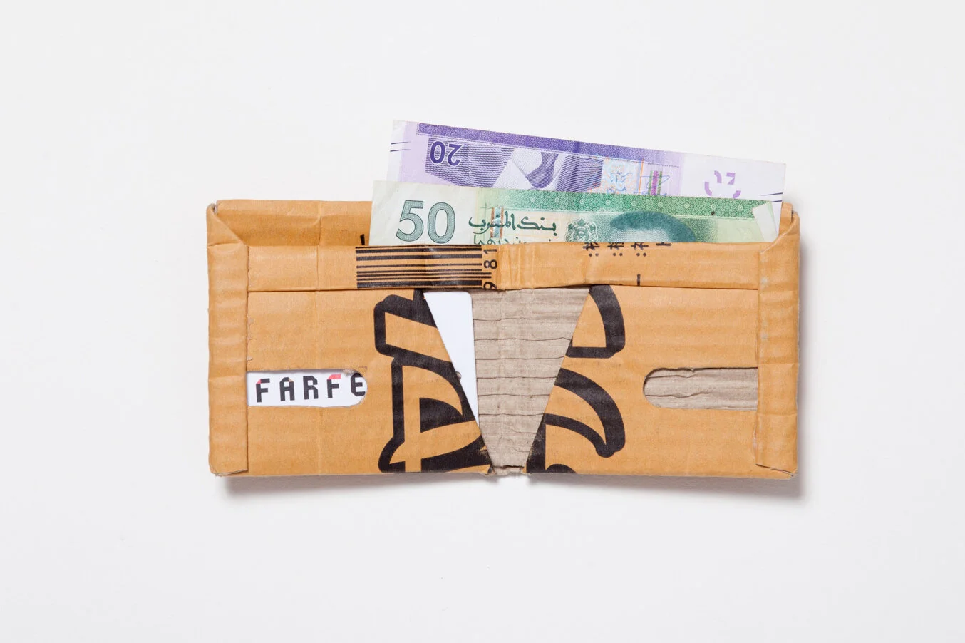 10年前還是多摩美術大學資訊設計系窮學生的島津冬樹,錢包損壞時苦於沒有足夠的預算購買新錢包,當他看到房內堆置的廢棄紙箱,靈機一動地想道,或許可以拿這些紙箱當作材料,自己動手做錢包!「我原本想說紙箱製成的錢包可能很快就壞了,但是出乎意料的是,這只錢包用了很久很久。」島津冬樹表示。