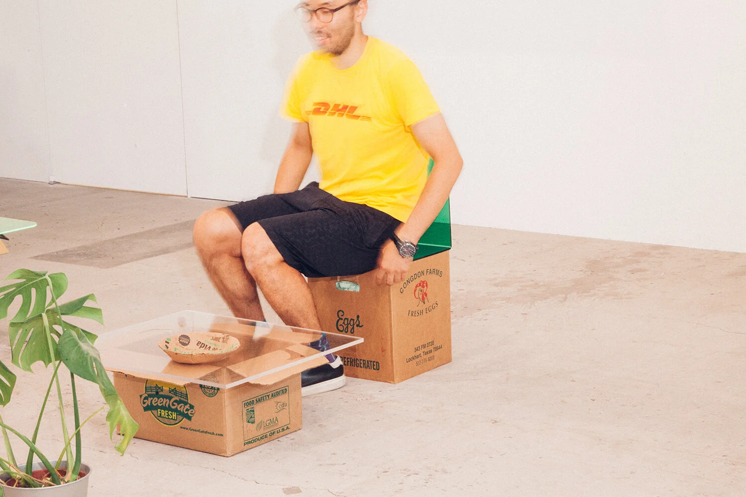 從紙箱錢包延伸至紙箱家具,島津冬樹企圖讓生活空間中有更多「再設計」的機會,也讓日常中帶有點幽默感。