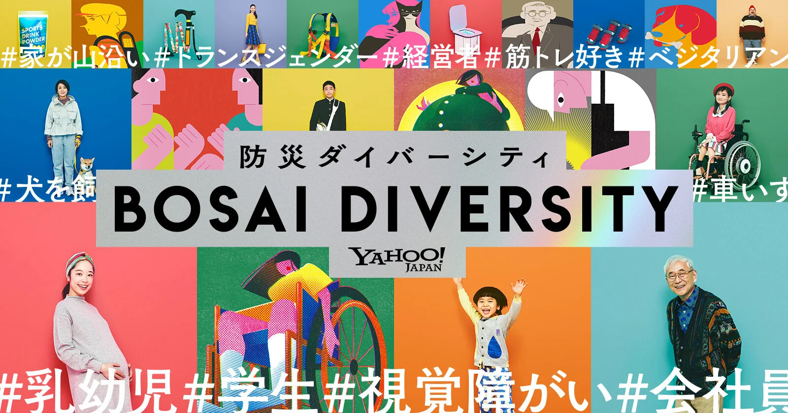 日本311大地震後每年都會推出募款企畫的Yahoo! JAPAN,在日本人類多樣性研究所監督下,設計了網站「BOSAI DIVERSITY」。大家可以連上網站,依照個人的職業、居住環境、身體狀況和興趣選填,網站會綜合條件,從百件防災用品插畫圖卡之中,挑出你所需要的個人防災卡片,同時連動到網路商店,讓你意識到自己究竟需要什麼東西,順道一次補好補滿。
