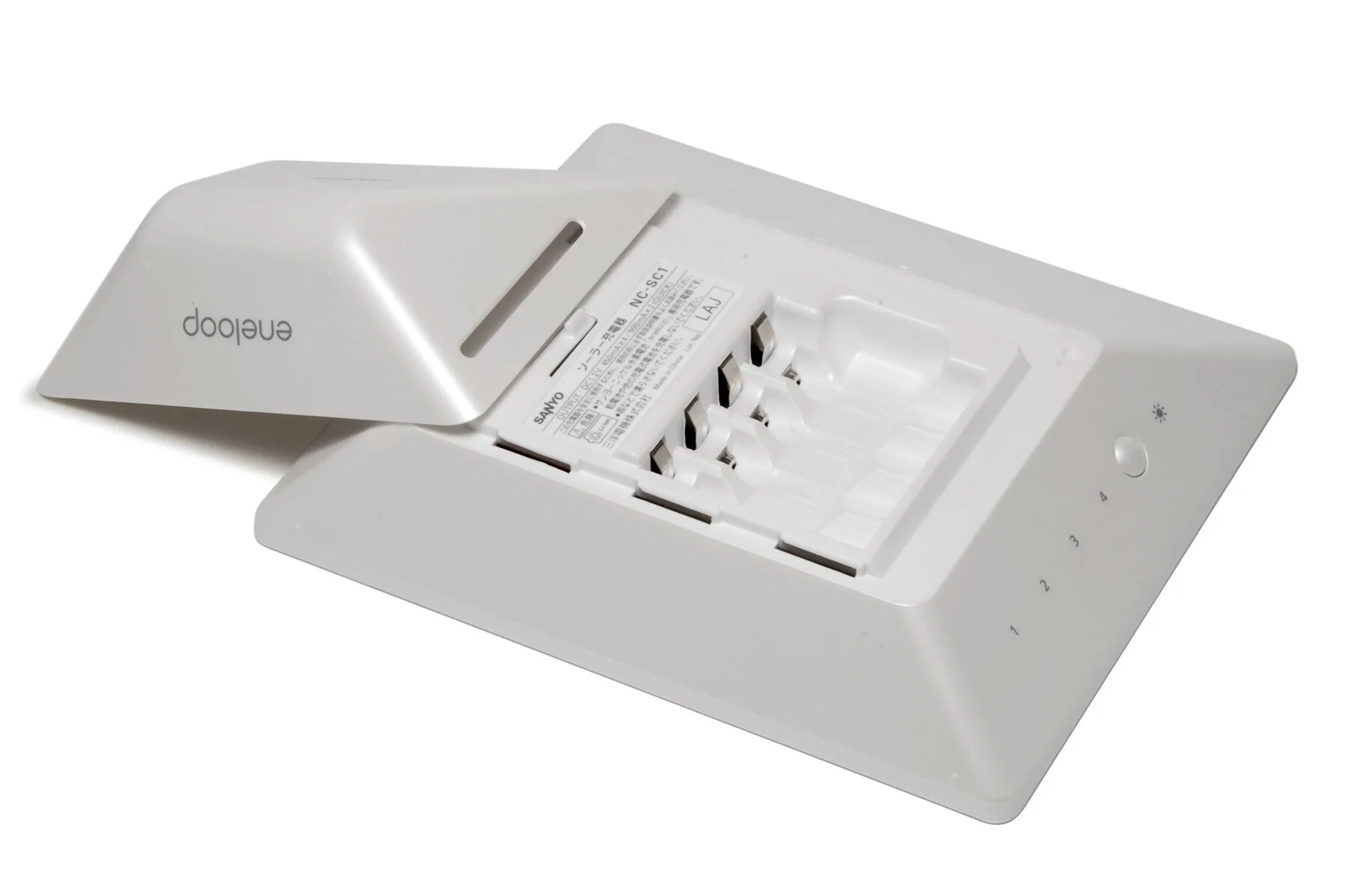 Eneloop太陽能充電器內建鋰電池,當光線不足時仍可以提供電池充電。© SANYO Electric Co. Ltd