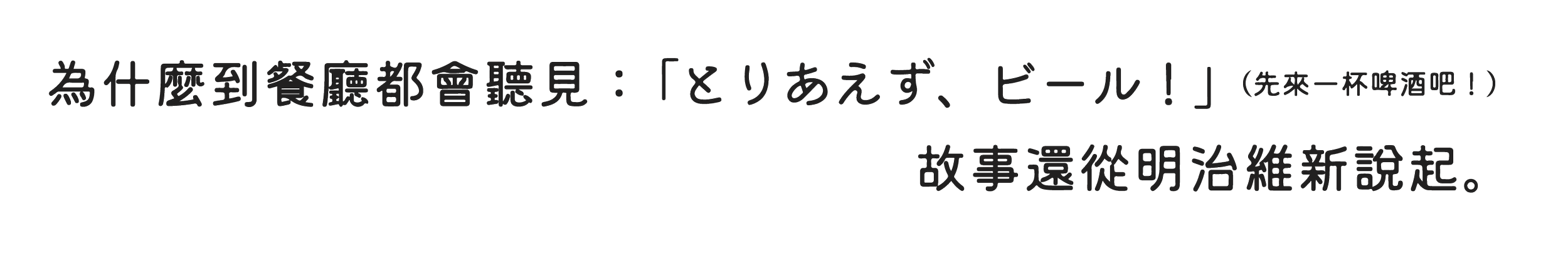 前頭聊了這麼多日本酒的故事,怎麼能略過日本人最愛的啤酒不談呢?現在我們所熟悉的啤酒是發源於 19 世紀中期的歐洲,得以大量製造、口味穩定的啤酒漸漸普及世界各地,日本則是大約在明治維新時期,隨日本開國、外國人的進駐,第一間啤酒釀造廠在橫濱萌芽,並跟著時代的風潮、產量上升進入日本人的生活。從 1960 年代左右,厭倦既有口味的人們開始尋覓其他擁有獨特風味的啤酒,將目標鎖定在過往少量製造,但充滿個性的啤酒上,成為近年來精釀啤酒的濫觴。