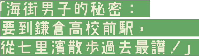 來到鎌倉,旅人們習慣買張江之電一日券,乘著搖晃的電車穿梭迷人海街,就是來到這座城町最不可錯過的一大行程。江之電沿線車站繁多,對初來乍到的旅人來說,最嚮往的應該就是曾在《灌籃高手》動畫出現「鎌倉高校前駅的平交道」。但如果直接搭車到鎌倉高校前駅下車就有點太可惜了。若只有一日遊的時間,要快速領略江之電沿線之美,建議在七里濱駅下車,天氣晴朗時,走到海邊可拍攝富士山與江之島同框的美景,接著再沿著人行道慢慢走向鎌倉高校前駅,沿途左手邊是海,右手邊是江之電的軌道,各種鎌倉必見風情滿溢,令人無比暢快。