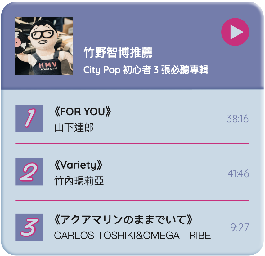 對於現在熱衷於City Pop的樂迷來說,收集黑膠確實成為樂趣所在,因此帶動二手市場的價格持續上揚。竹野智博透露,市場上的熱門品項非山下達郎莫屬,雖然依照專輯有價格上的差異,不過以最經典的《FOR YOU》為例,十年前大概日幣一千元就能買到,但現在可能需要日幣一萬元左右才能購入,這高達十倍的漲幅反映出City Pop的熱門,「其實我們也想把價錢壓低,但賣太便宜也是馬上就會秒殺,最後還是依照市場流動價格做了調整,每一年的價差其實會越來越明顯,價格也會愈來愈高漲。」