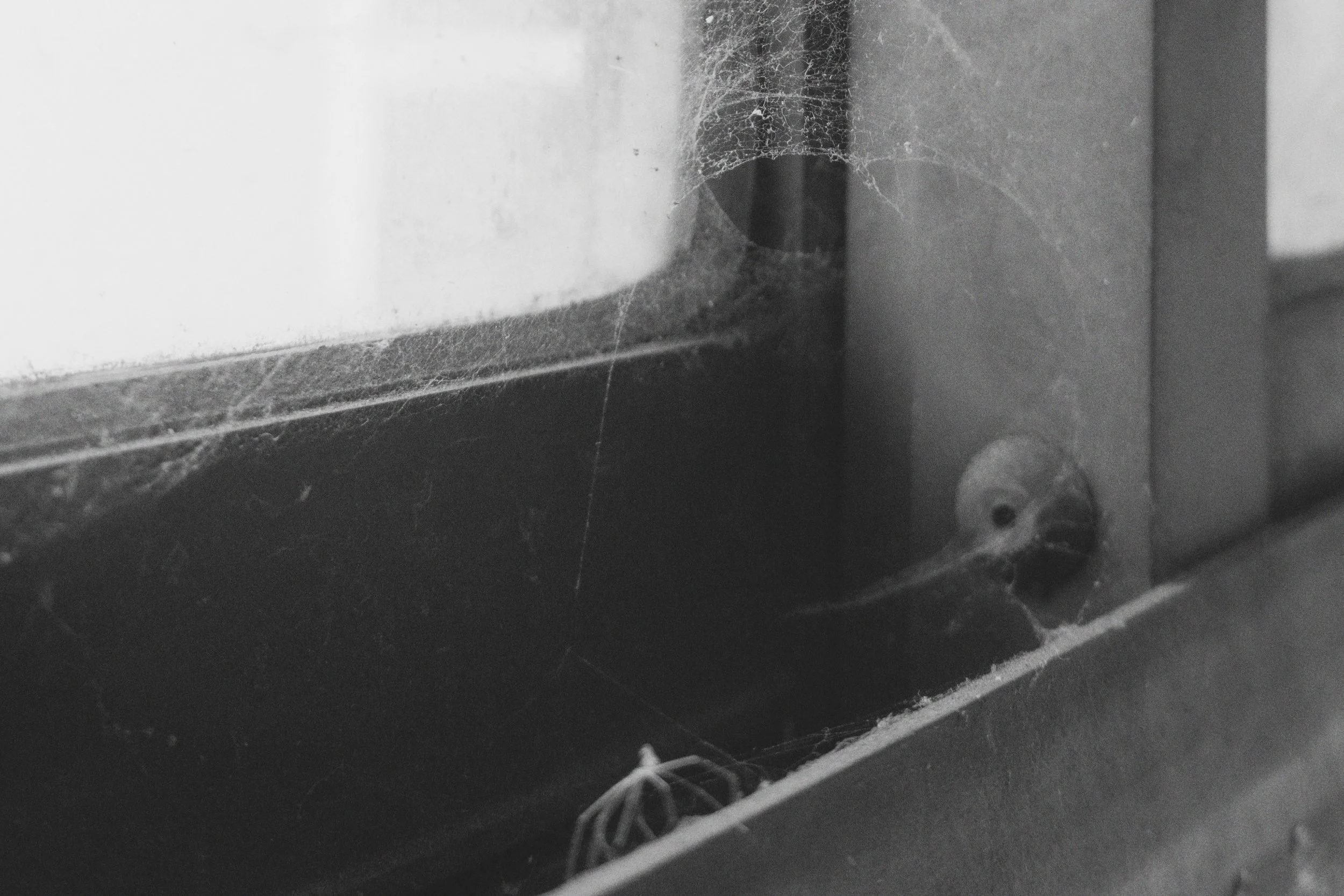 在窗邊看植物的時候發現一隻小蜘蛛在上面的窗戶住下來了