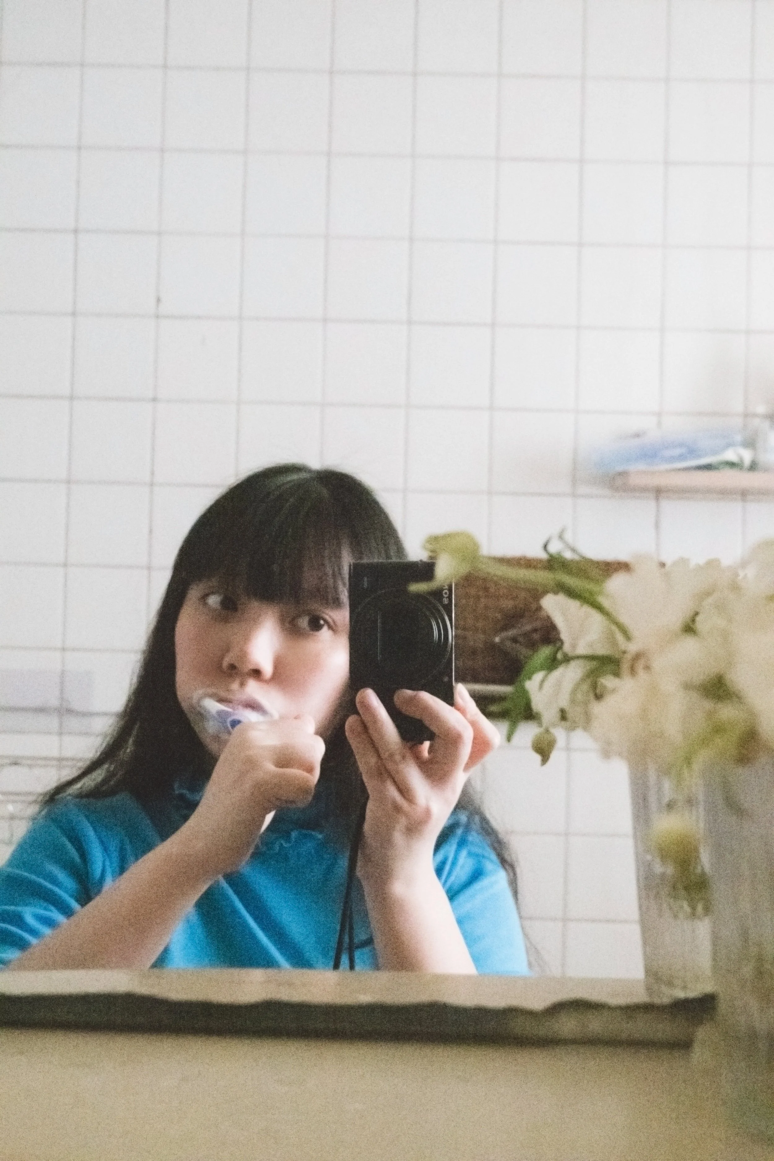 戴牙套中的我常常在刷牙,換好衣服後,再一次的自拍挑戰!為了能按下快門,還特地用左右手交換,非常做作