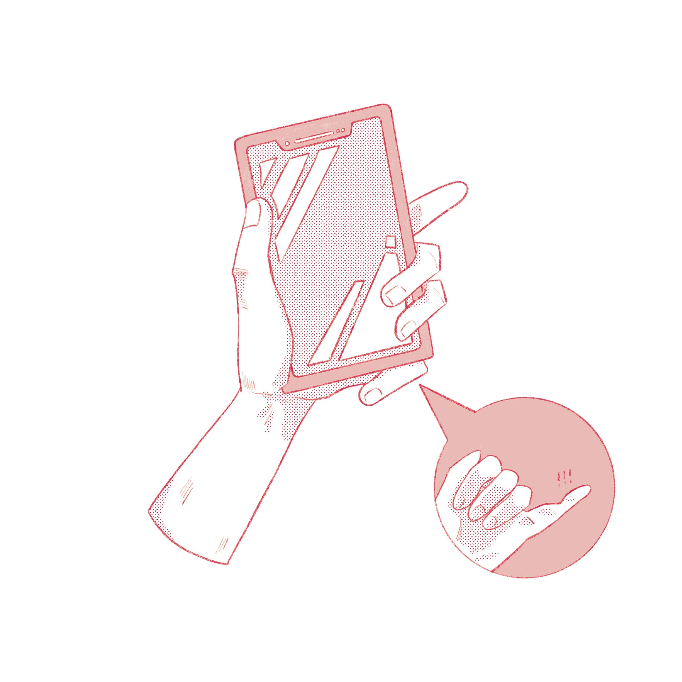 單手使用手機時,總是會將手機底部抵在小指關節處,長期下來也造成20代小指關節凹陷的風化作用。