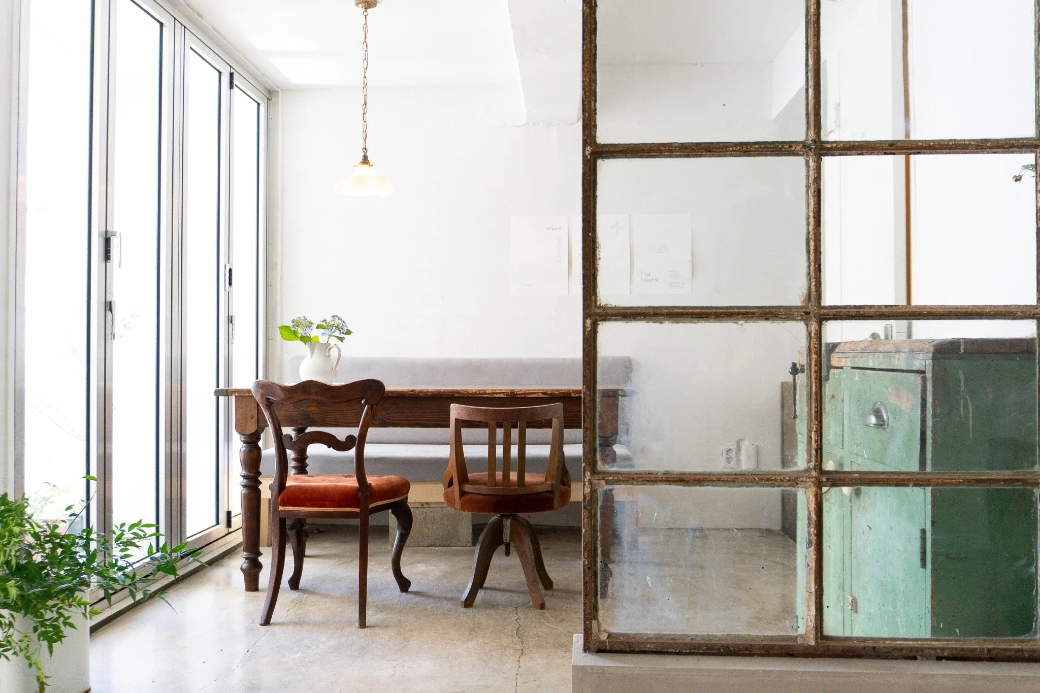 沐浴在溫和的光線裡,留有時間刻痕的舊物與古董陳設在潔白明亮的空間中,置身於此總能讓呼吸不自覺和緩下來。1、2樓為供應咖啡、小食與義大利麵的CAFÉ,地下室是名為「B1lder」的書店/古著店,3樓更有「Piece of Antibes」客房提供訂房住宿。擺脫單一店型的束縛,在HELMET的樓層間穿梭時,總能與不同的驚喜相遇。