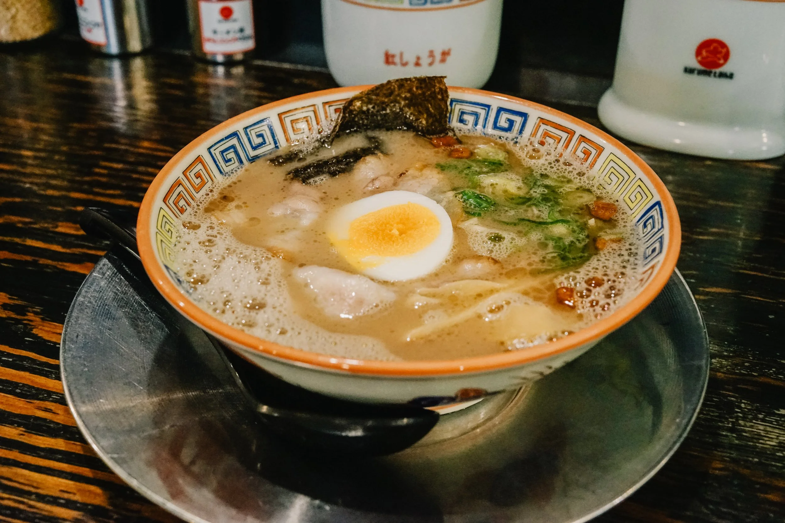 作為豚骨拉麵的起源,相較於博多拉麵每日新煮湯頭,久留米拉麵則採「召回湯頭」的作法,濃而不膩、層次豐富。品嘗時的驚喜在於漂浮湯頭上、充滿焦香的油炸豬背脂「カリカリ」。