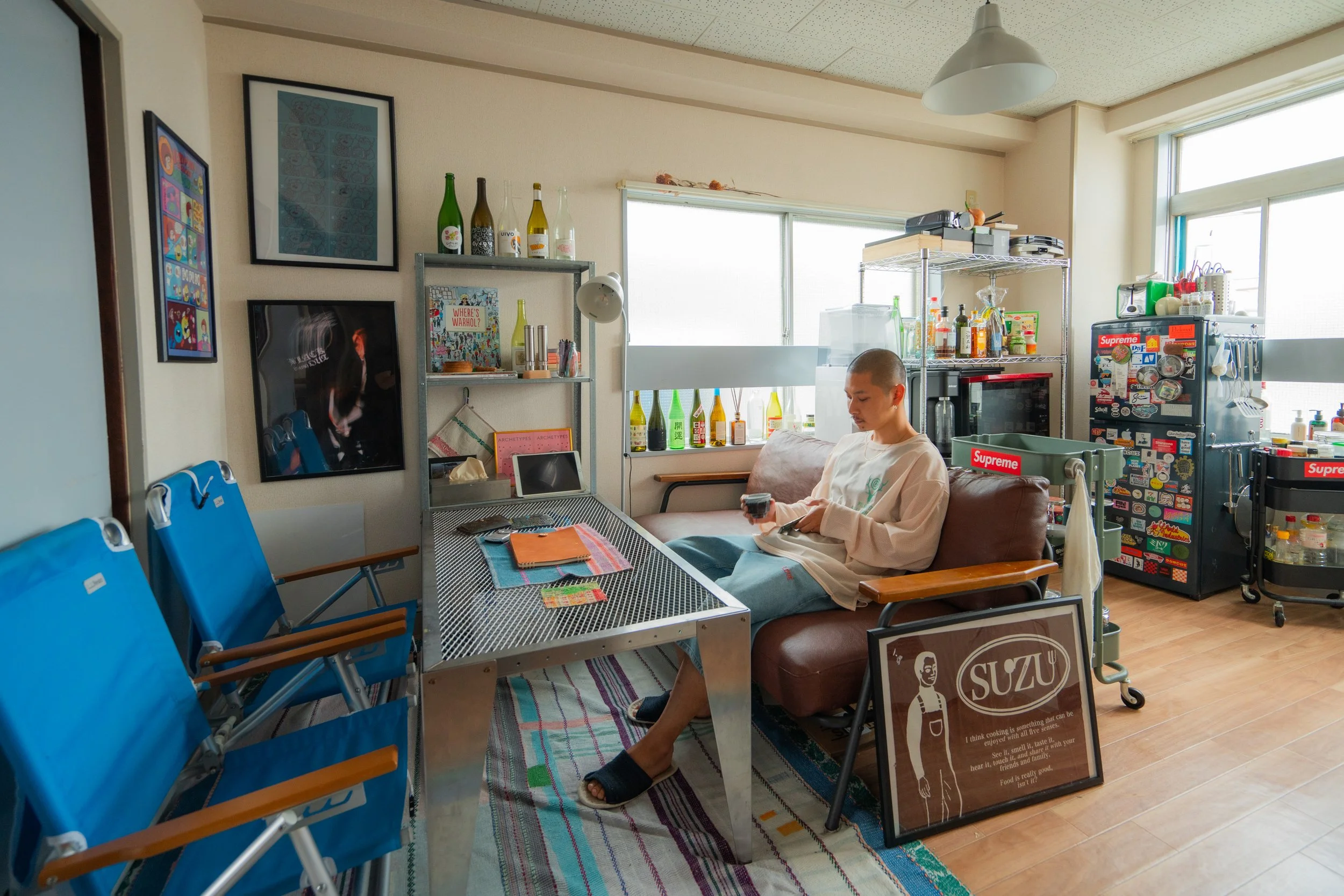 為了與父親共同經營位於靜岡縣的家業——伊東溫泉「鈴傳莊」,JIN以東京為主要據點開創了名為「鈴」的外燴事業,試圖透過東京帶來的刺激與活力,為家業與個人事業注入更多活水。因此,他與妻子選擇在東京一處和洋折衷的部屋展開生活。「鈴」供應和式餐食,為了讓和食更容易享用,JIN曾將其做成taco形式,而他也以類似的方式轉化住家。打通了和室客廳與洋房臥室,使整體空間更加通透。但最迷人的,莫過於他拆下和室特有的壁櫥門,賦予壁櫥新的使用形式,讓傳統房屋能以現代的生活方式延續生命。