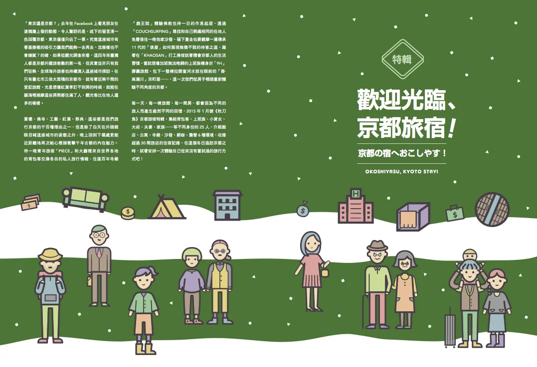 每一天、每一棟旅館、每一間房,都會因為不同的旅人而產生截然不同的回憶,2015年1月號《秋刀魚》京都旅宿特輯,集結背包客、上班族、小資女、大叔、夫妻、家族⋯⋯等不同身份的25人,介紹飯店、公寓、寺廟、沙發、網咖、露營6種環境,收錄超過30間旅店的住宿記錄,在這個冬日造訪京都之時,試著安排一次體驗自己從來沒有嘗試過的旅行方式吧!