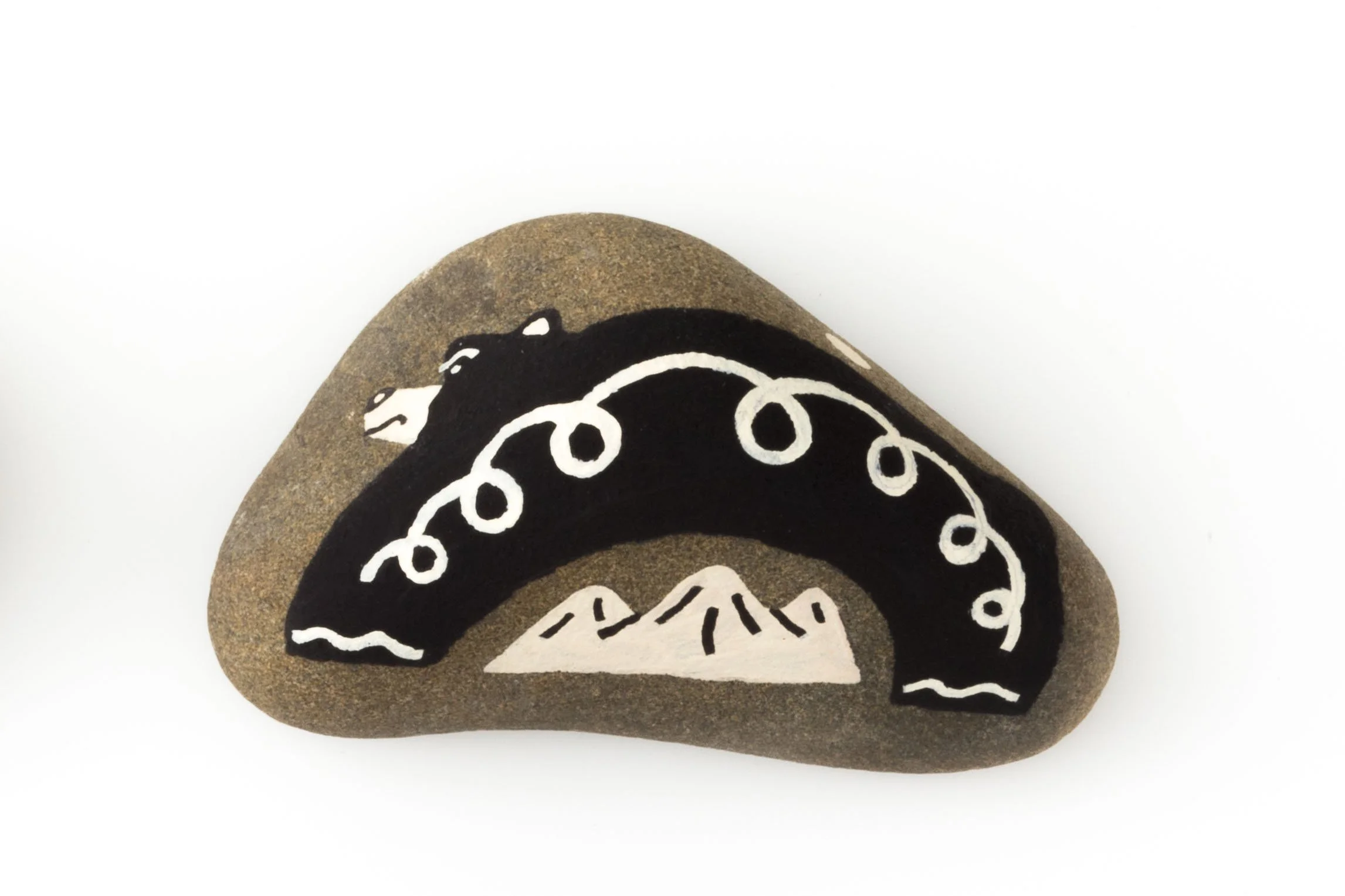 他與另一位插畫家YACHIYO KATSUYAMA 曾組成二人創作組「石に花」。命名概念來自日本的諺語,意指在石上生出花朵,原本比喻「絕對不可能的事」,但如果是用畫的呢?石頭上確實能生出花!延伸這個俏皮概念,他們在戶外蒐集無數石子,並在上面作畫,把無用的石頭們轉化成美感與實用兼具的「紙鎮」展出。換句話說,也是點石成金了!