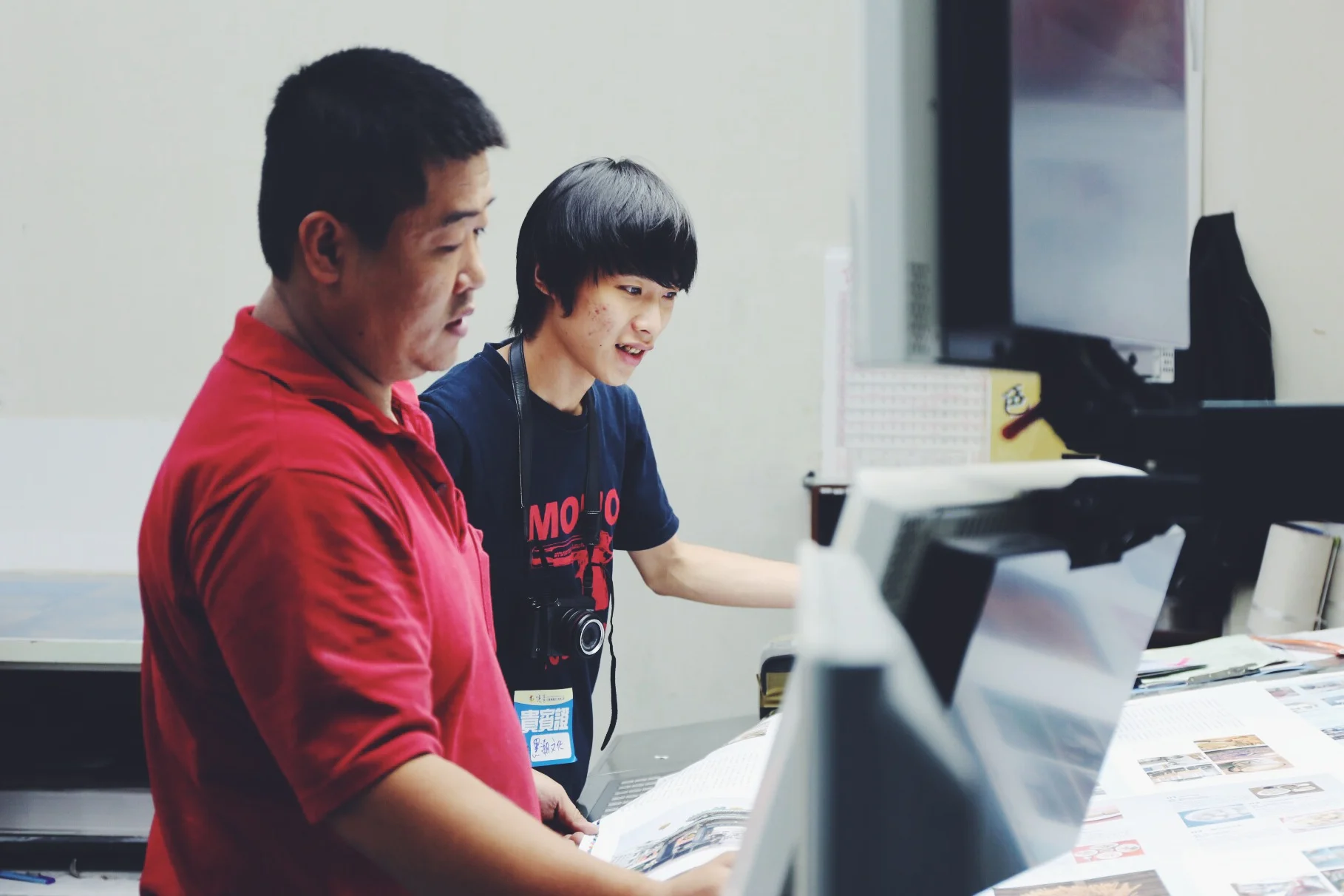 編輯哲寧正在印刷廠看印《藍鯨》的內頁。