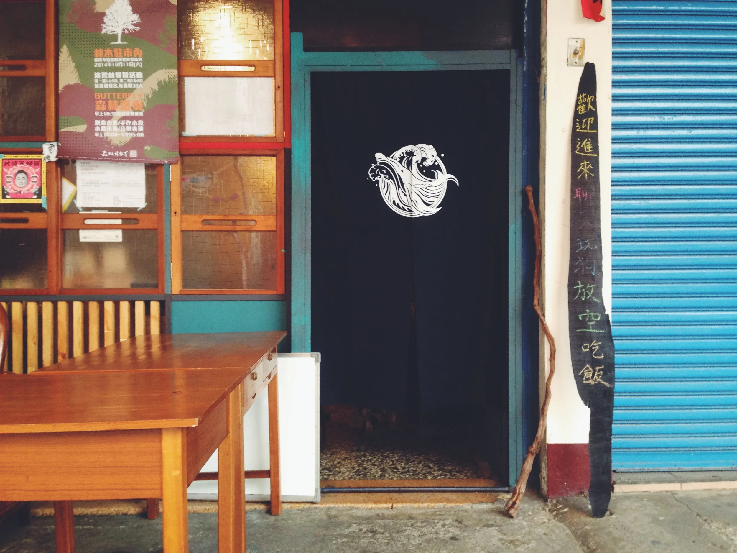 編輯團隊《藍鯨》在南投埔里的創刊分享會,每場活動,我們都會在對方的場地,掛上我們手工絹印的暖簾。